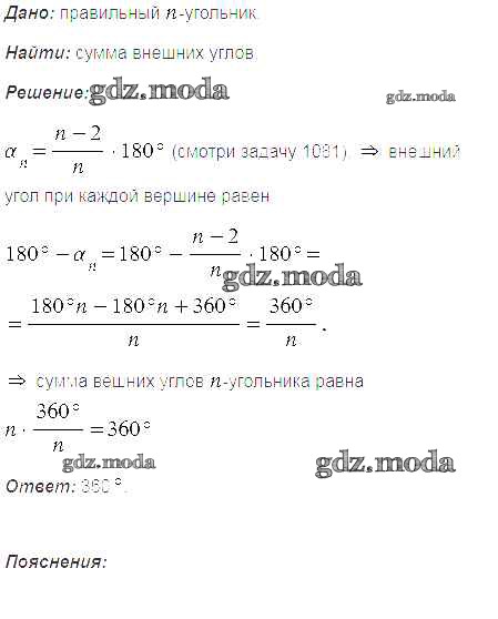 ОТВЕТ на задание № 1082 Учебник по Геометрии 7-9 класс Атанасян