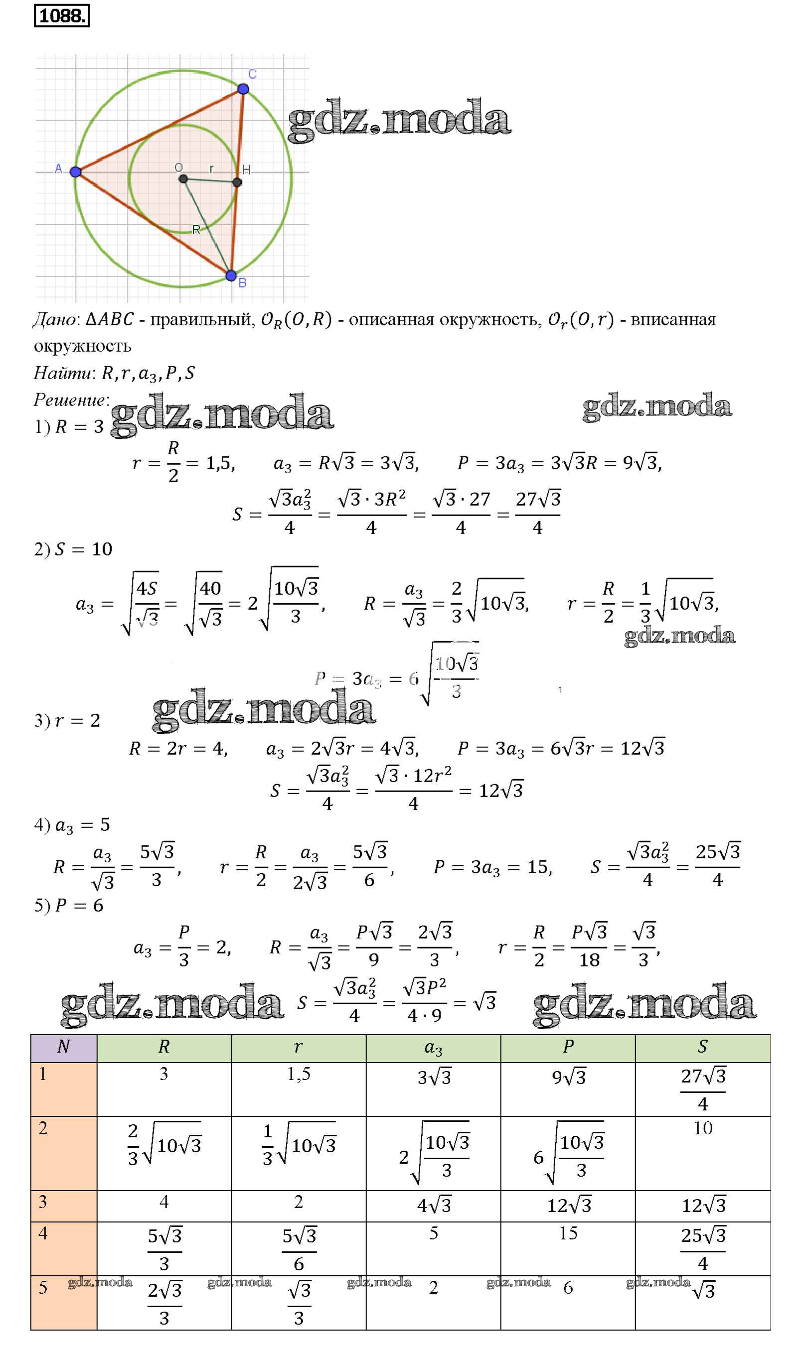 ОТВЕТ на задание № 1088 Учебник по Геометрии 7-9 класс Атанасян