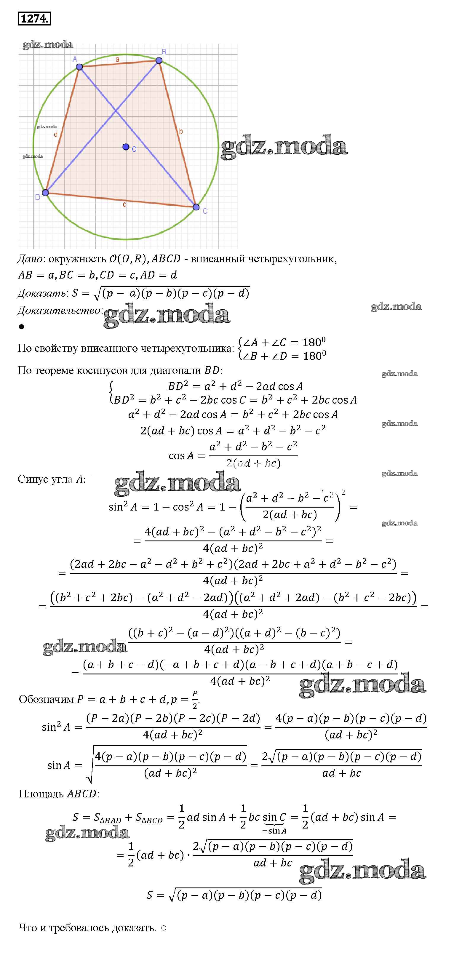 ОТВЕТ на задание № 1274 Учебник по Геометрии 7-9 класс Атанасян