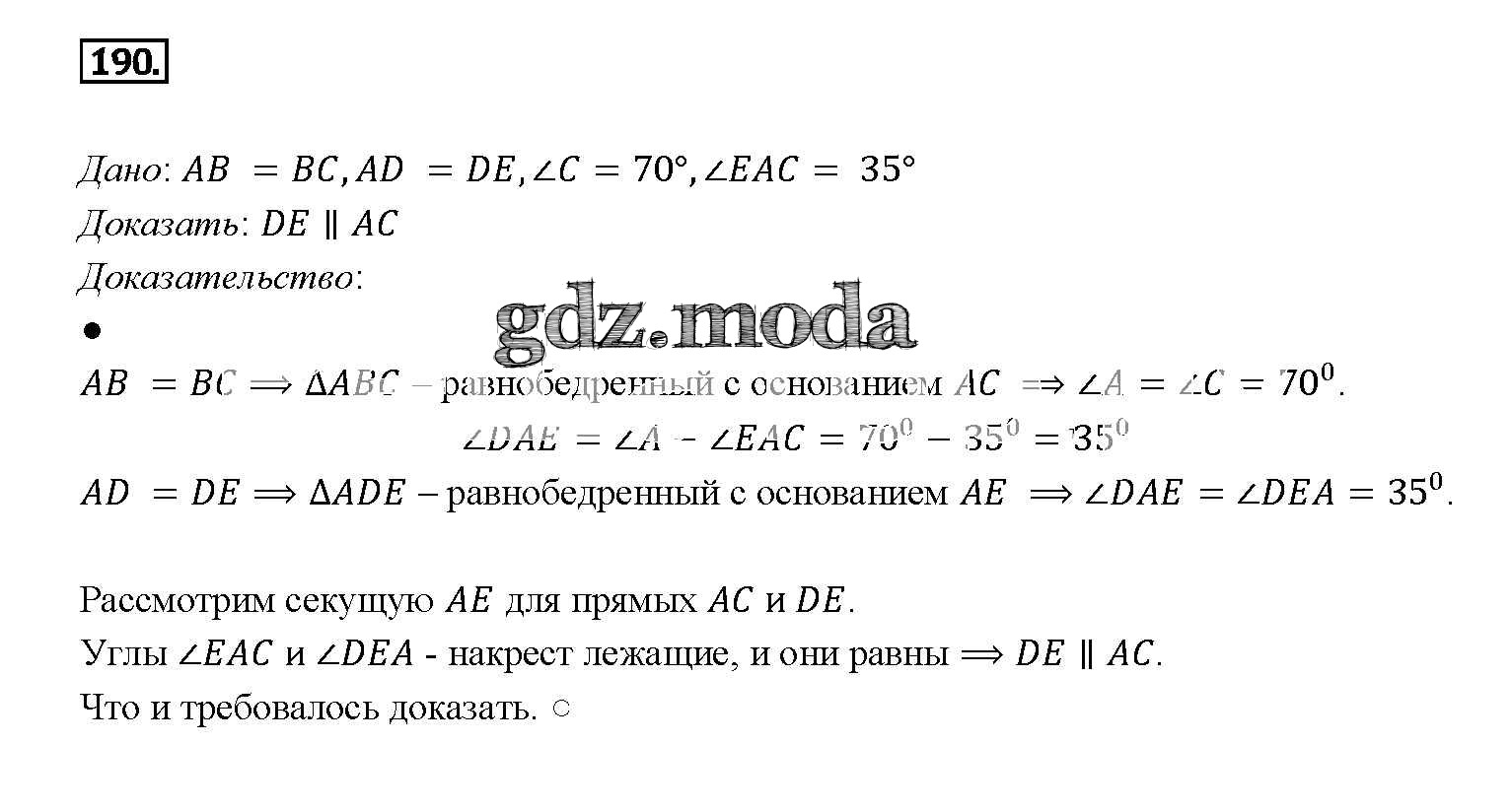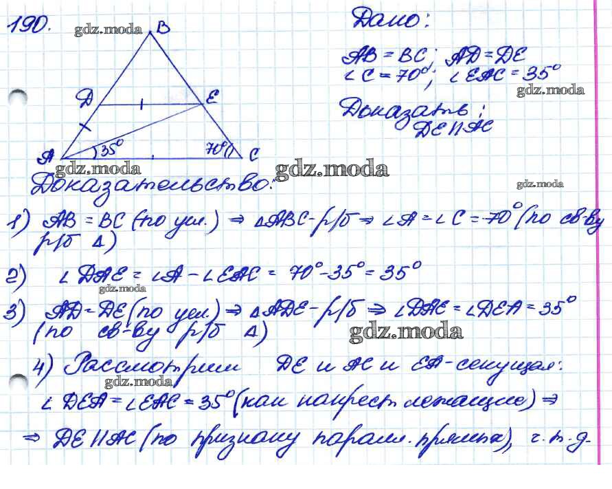 ОТВЕТ на задание № 190 Учебник по Геометрии 7-9 класс Атанасян