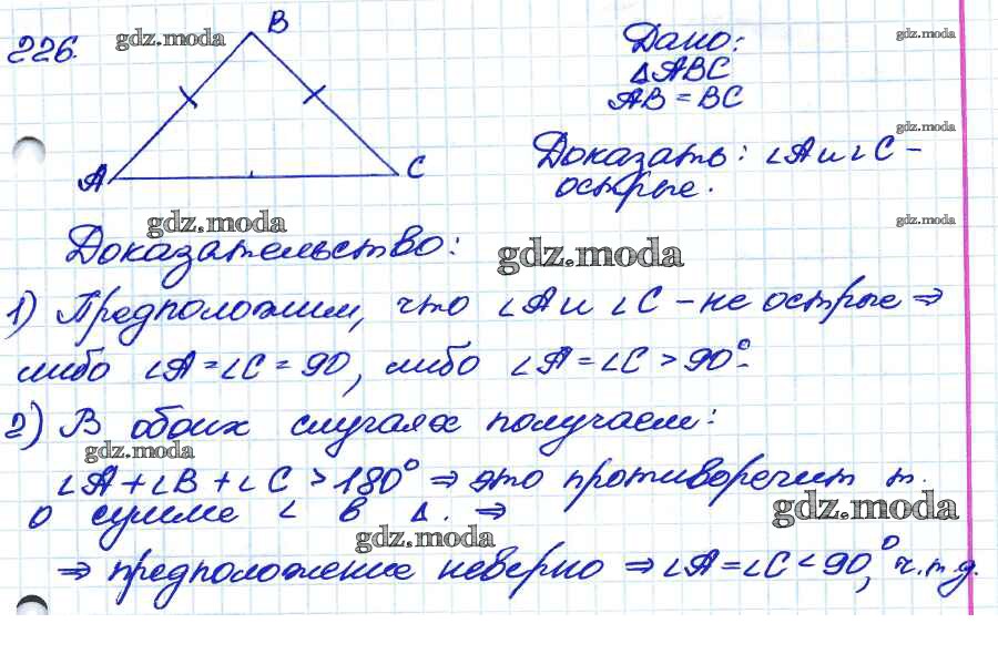 ОТВЕТ на задание № 226 Учебник по Геометрии 7-9 класс Атанасян