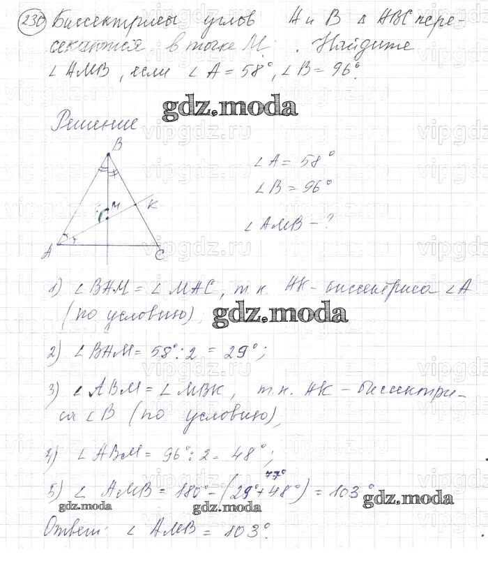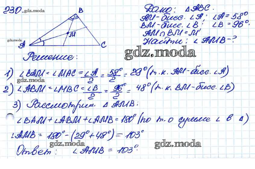 ОТВЕТ на задание № 230 Учебник по Геометрии 7-9 класс Атанасян