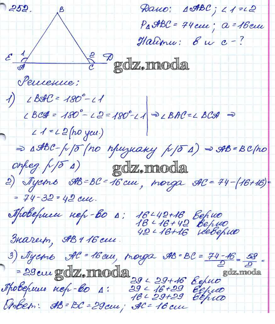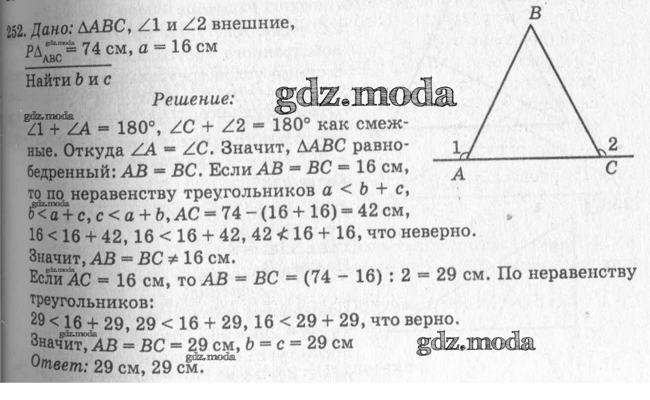 ОТВЕТ на задание № 252 Учебник по Геометрии 7-9 класс Атанасян