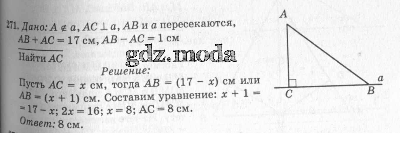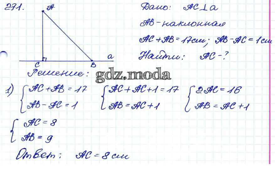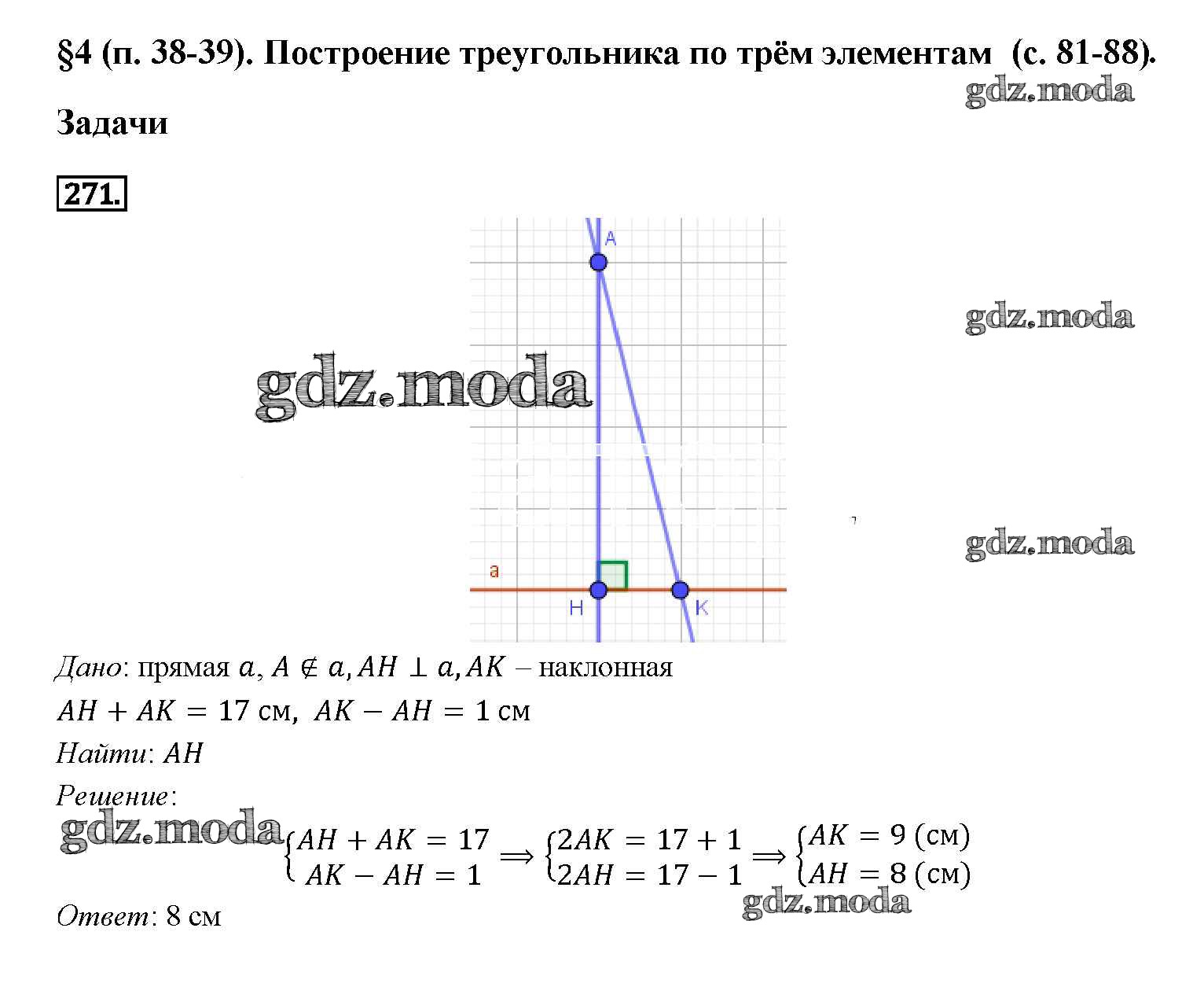 ОТВЕТ на задание № 271 Учебник по Геометрии 7-9 класс Атанасян