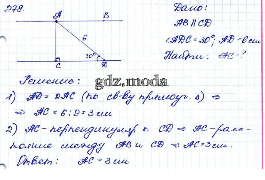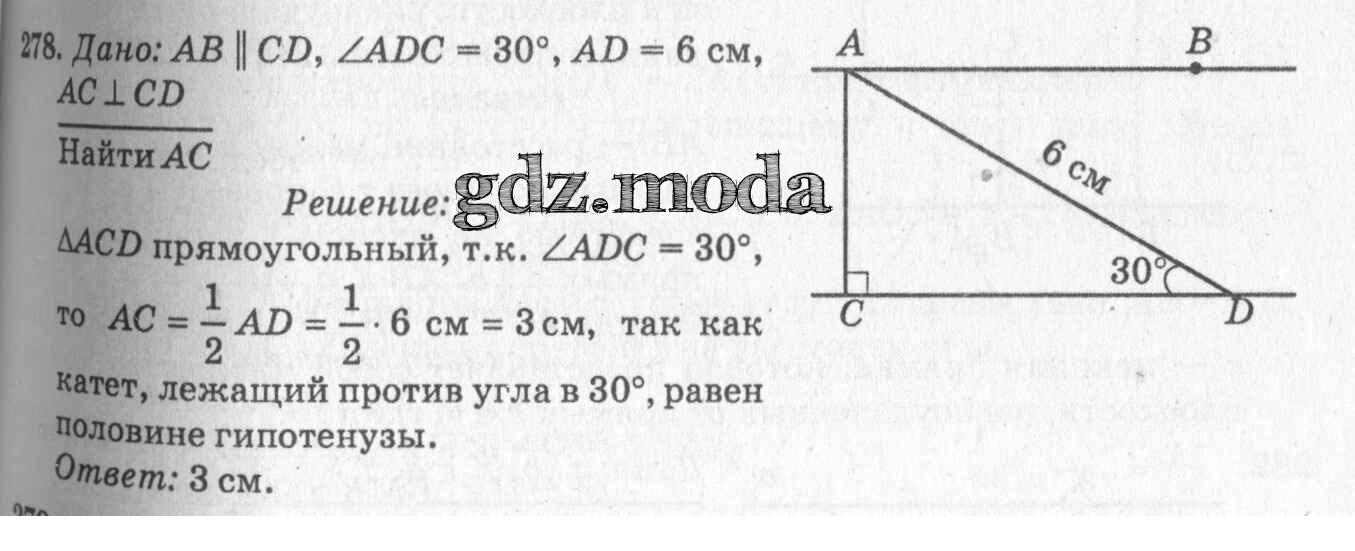 ОТВЕТ на задание № 278 Учебник по Геометрии 7-9 класс Атанасян