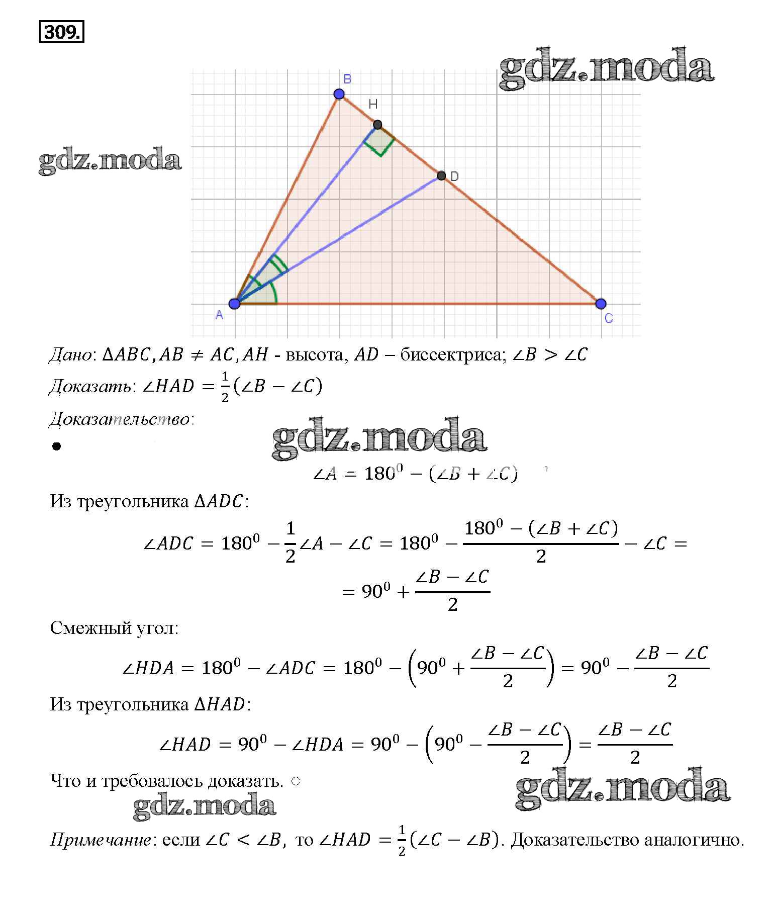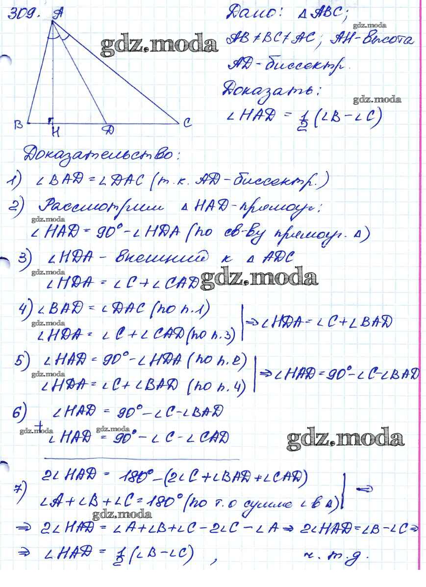 ОТВЕТ на задание № 309 Учебник по Геометрии 7-9 класс Атанасян