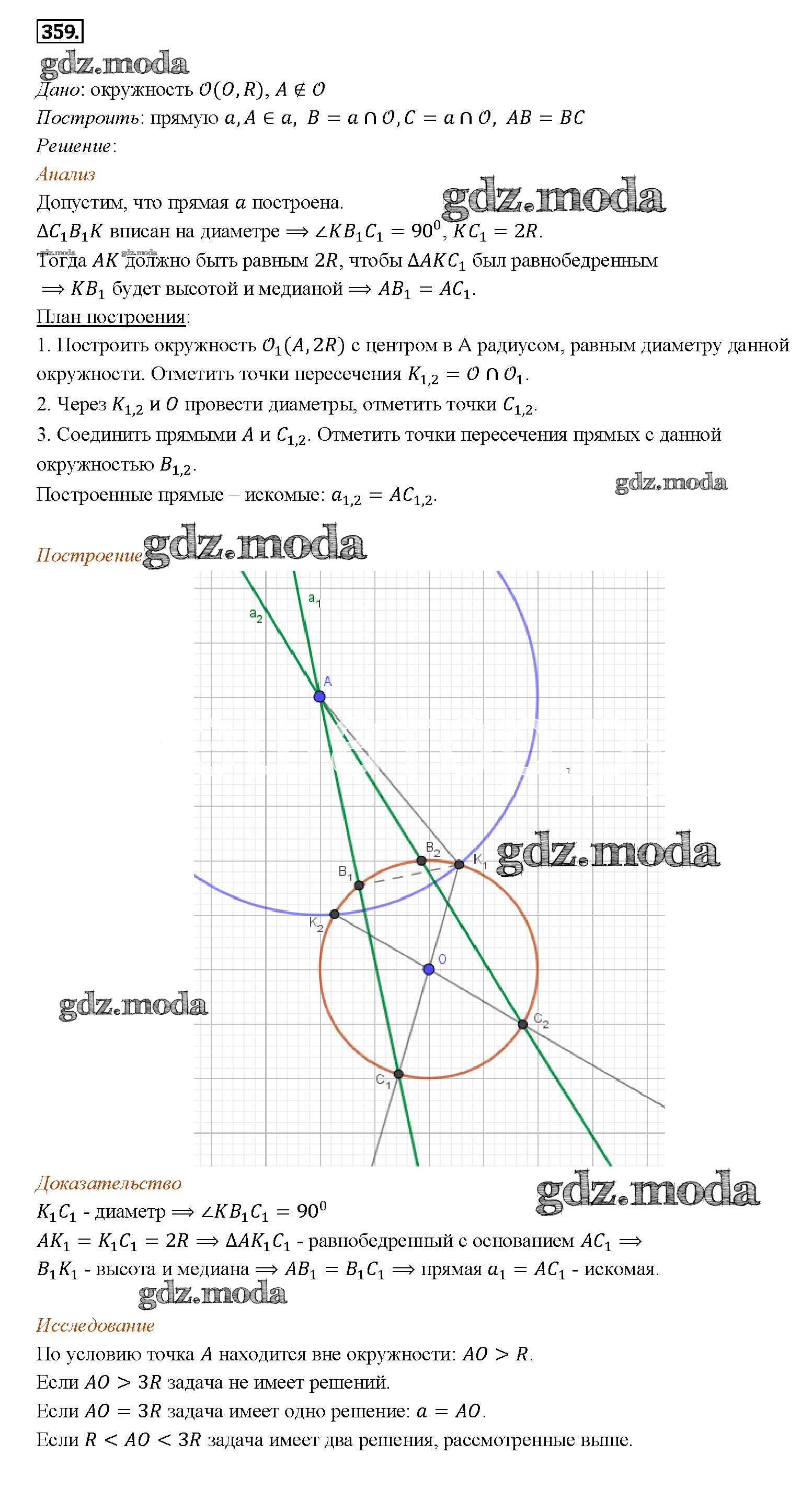 ГДЗ решение к заданию № 359 Геометрия 7-9 классы Атанасян Л.С. Просвещение 2010 ФГОС бесплатно на гдз.мода!