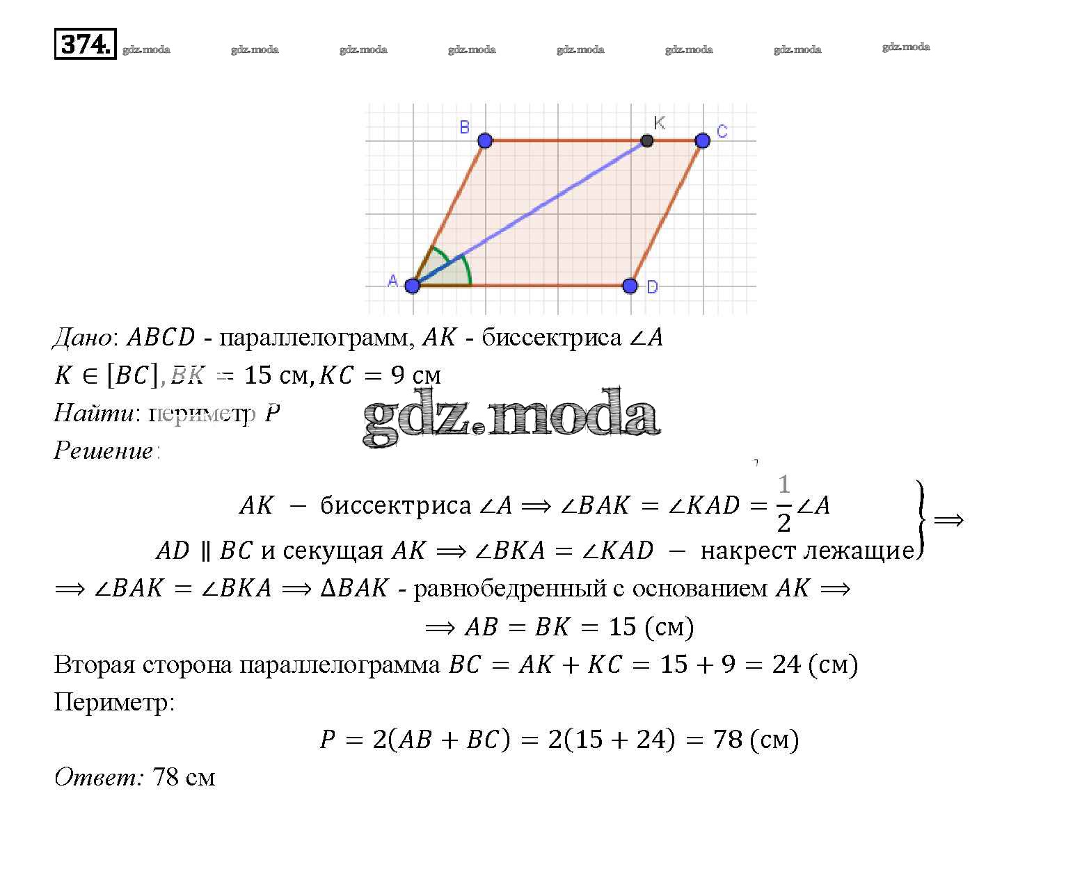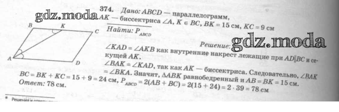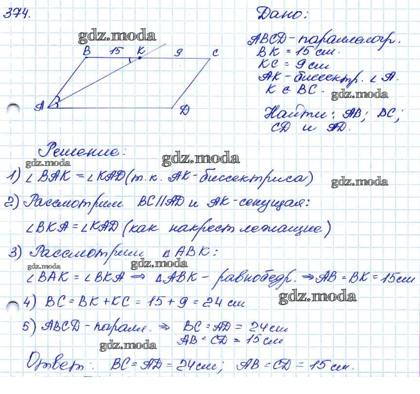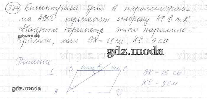 ОТВЕТ на задание № 374 Учебник по Геометрии 7-9 класс Атанасян