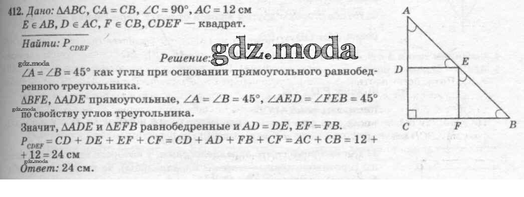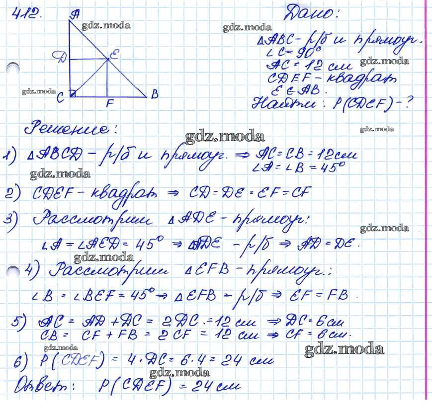 ОТВЕТ на задание № 412 Учебник по Геометрии 7-9 класс Атанасян