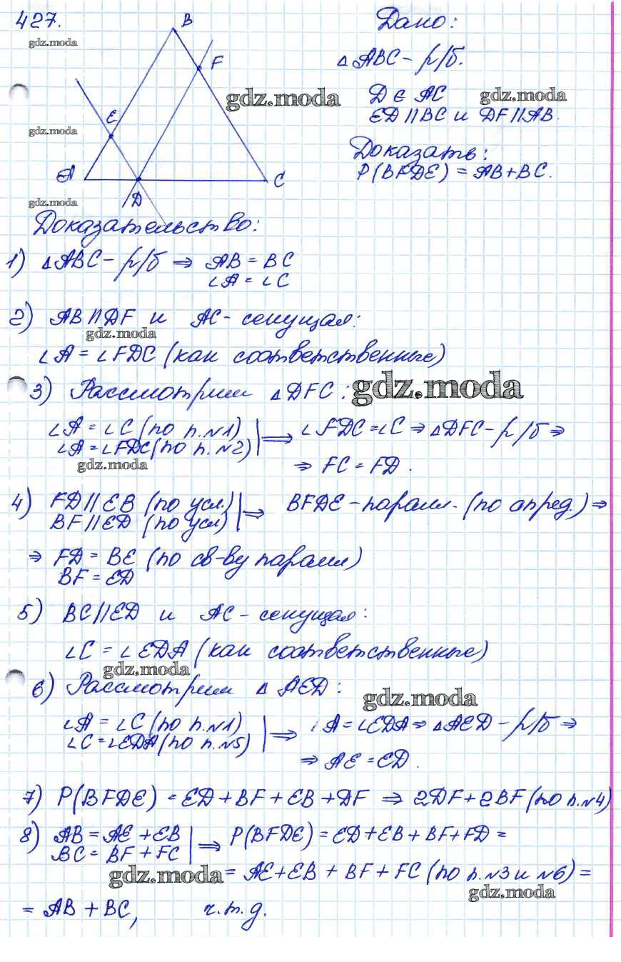 ОТВЕТ на задание № 427 Учебник по Геометрии 7-9 класс Атанасян