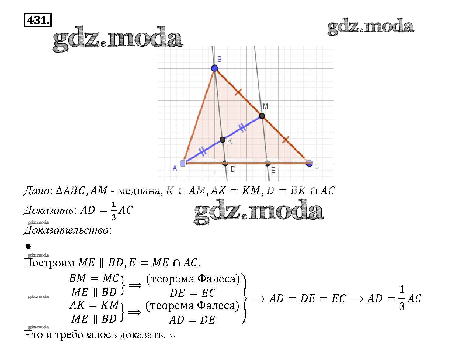 ОТВЕТ на задание № 431 Учебник по Геометрии 7-9 класс Атанасян