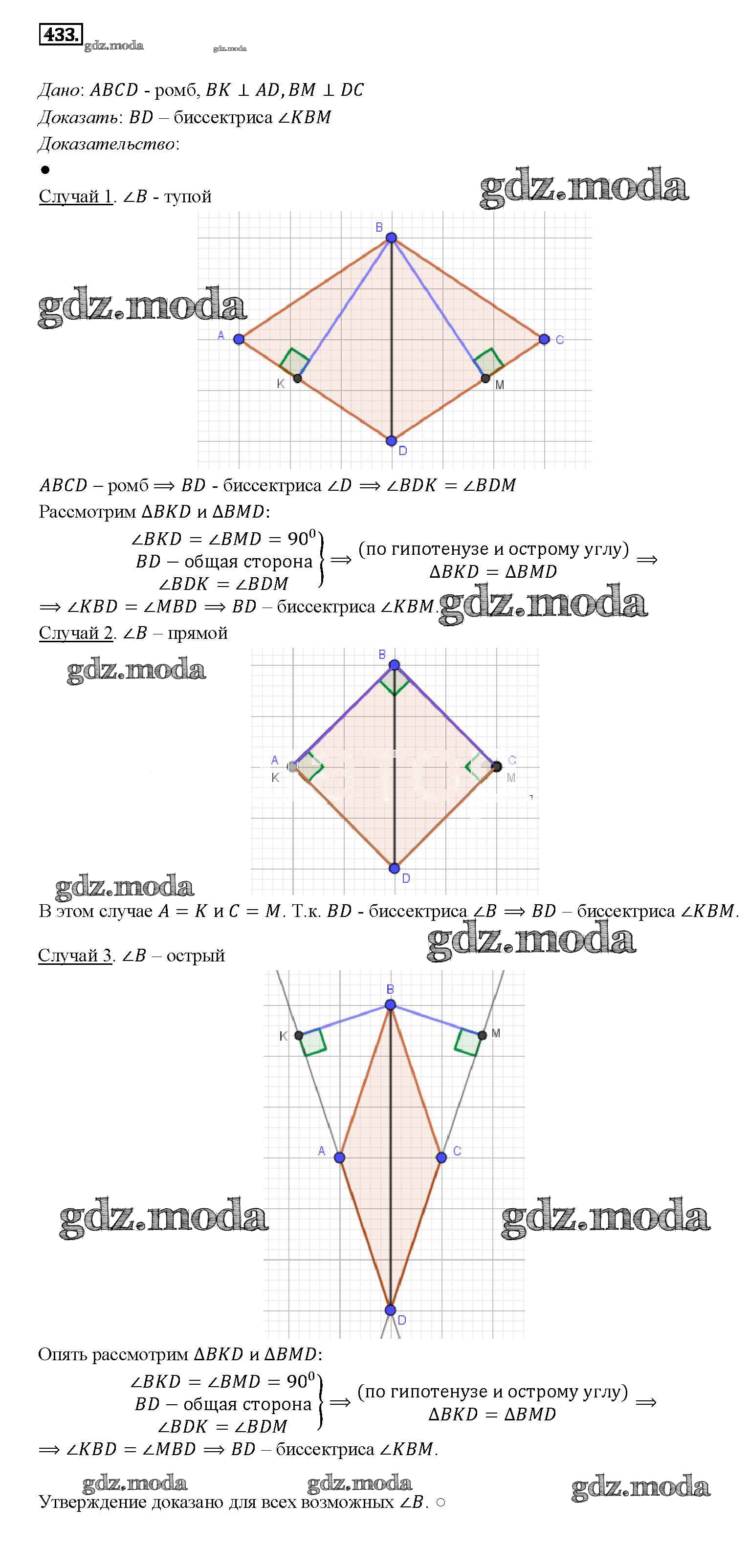 ОТВЕТ на задание № 433 Учебник по Геометрии 7-9 класс Атанасян