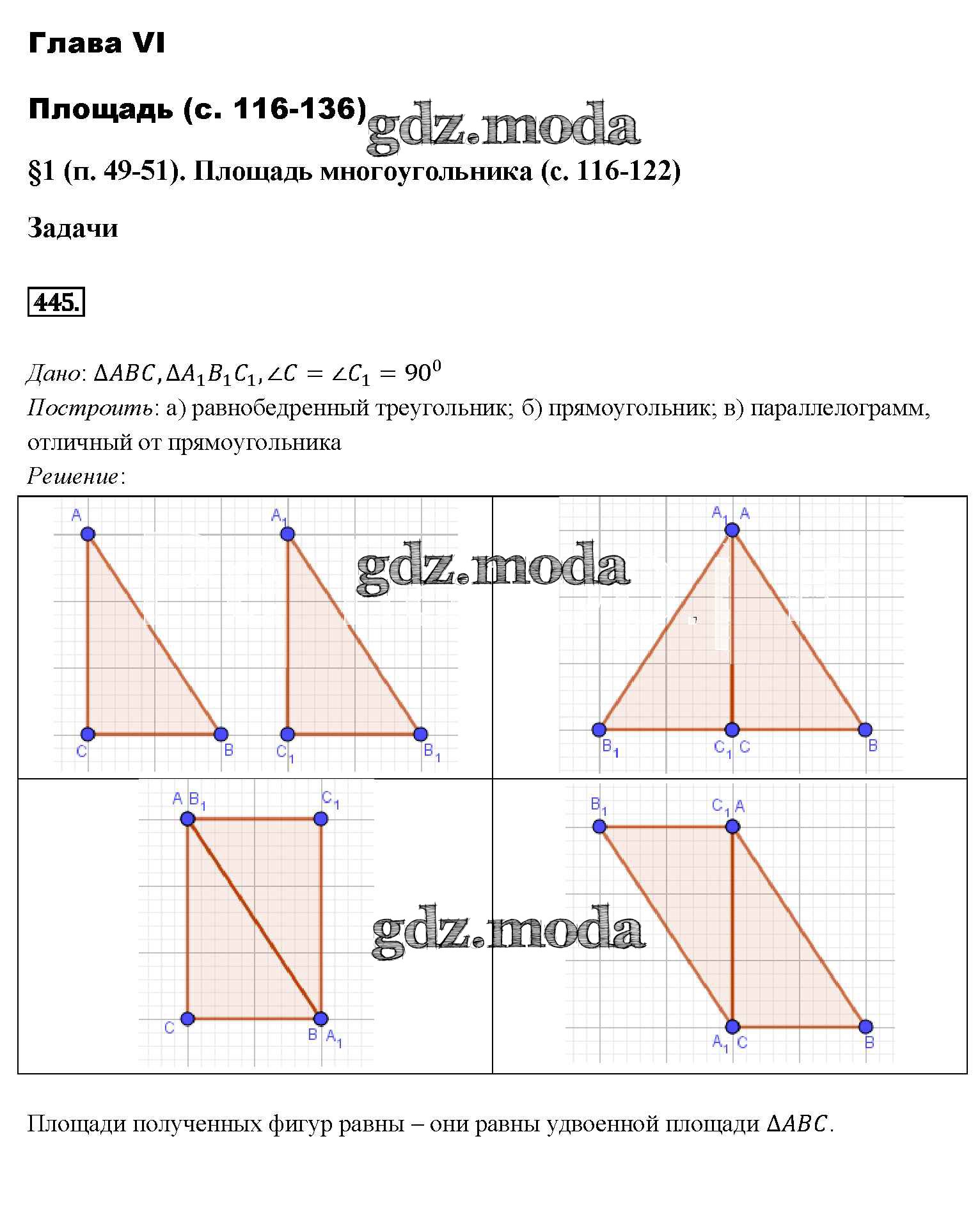 ОТВЕТ на задание № 445 Учебник по Геометрии 7-9 класс Атанасян