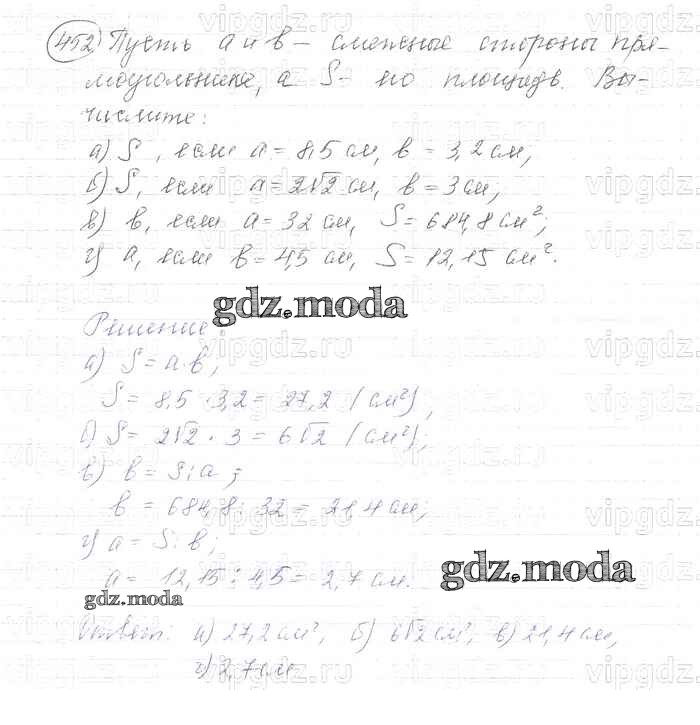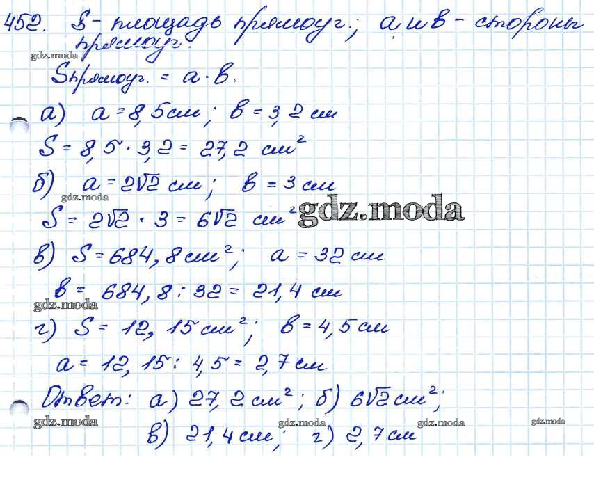 ОТВЕТ на задание № 452 Учебник по Геометрии 7-9 класс Атанасян