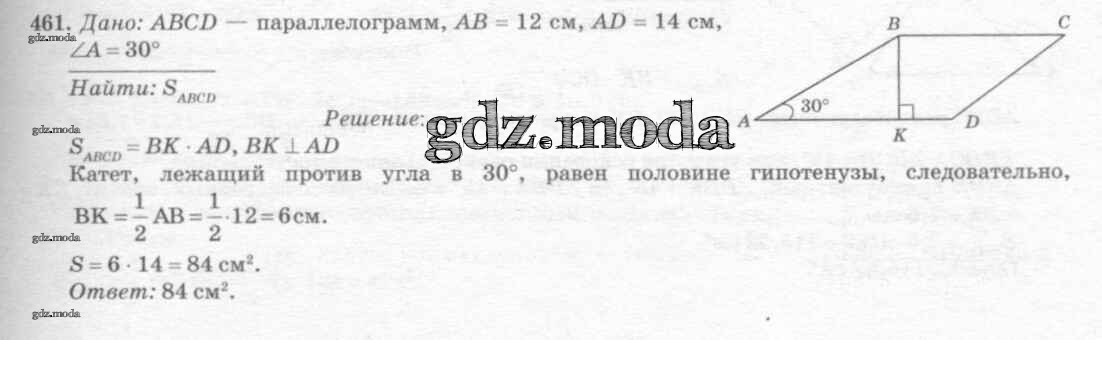 ОТВЕТ на задание № 461 Учебник по Геометрии 7-9 класс Атанасян