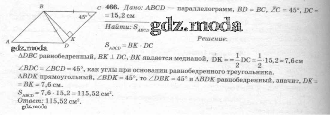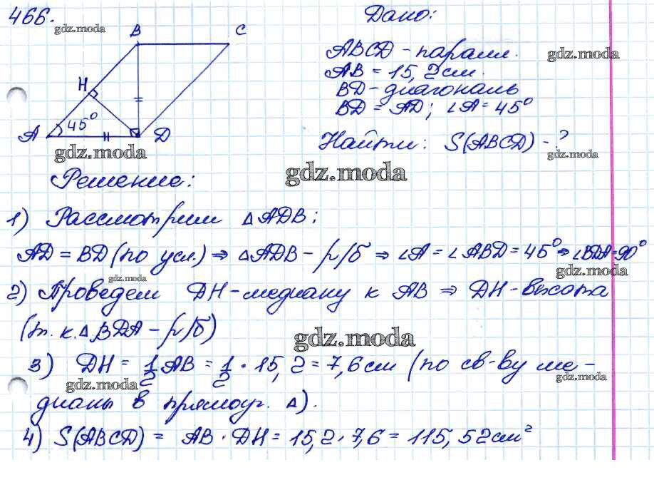 ОТВЕТ на задание № 466 Учебник по Геометрии 7-9 класс Атанасян