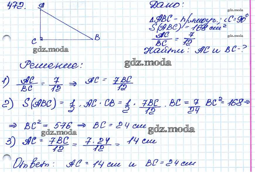 ОТВЕТ на задание № 472 Учебник по Геометрии 7-9 класс Атанасян