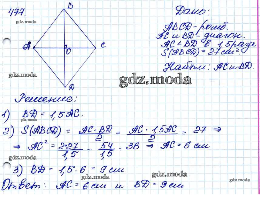 ОТВЕТ на задание № 477 Учебник по Геометрии 7-9 класс Атанасян