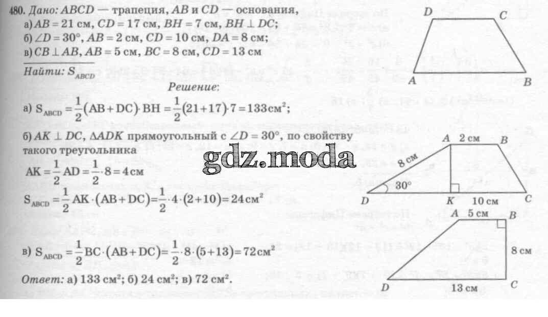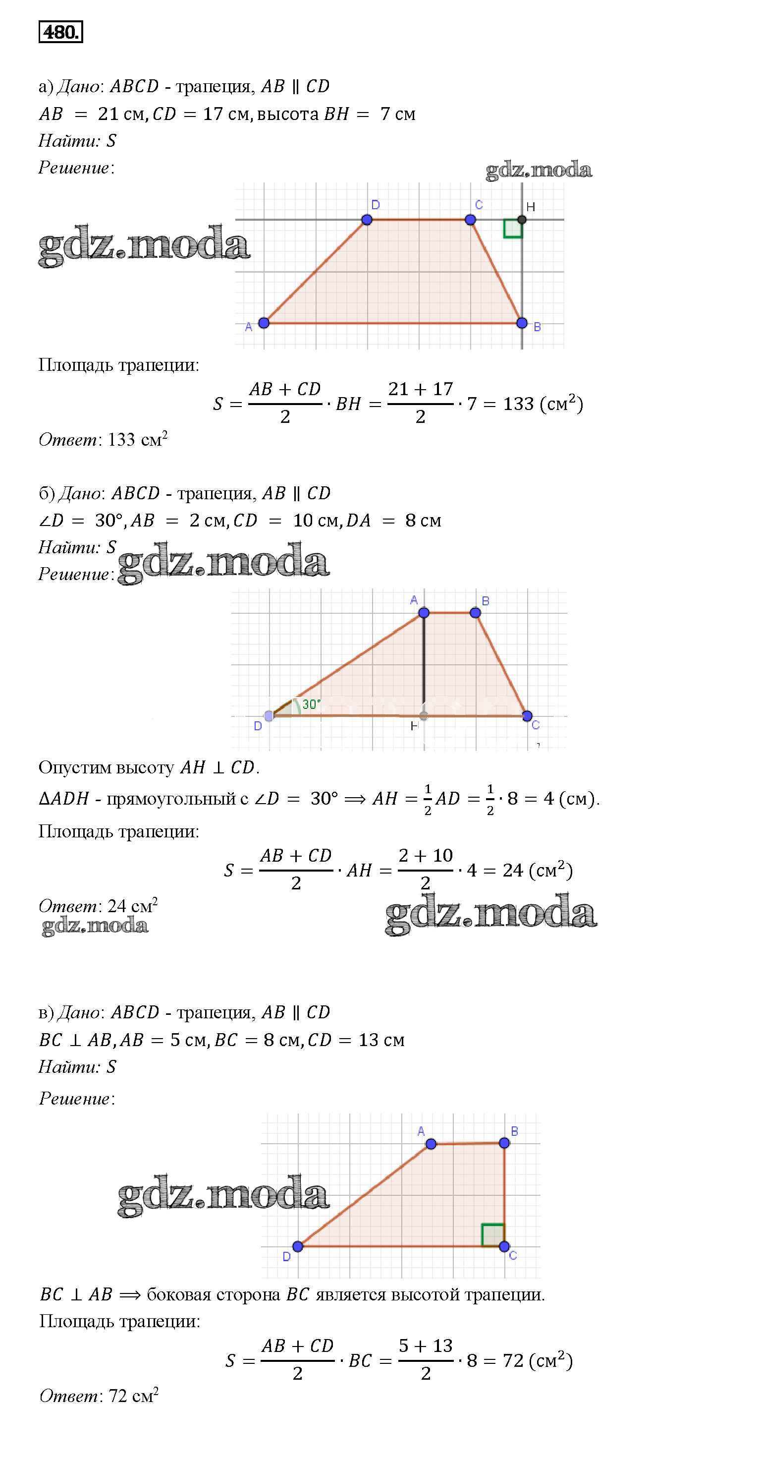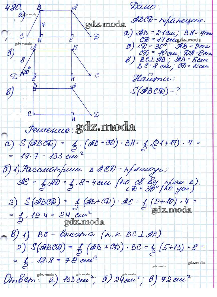 ОТВЕТ на задание № 480 Учебник по Геометрии 7-9 класс Атанасян