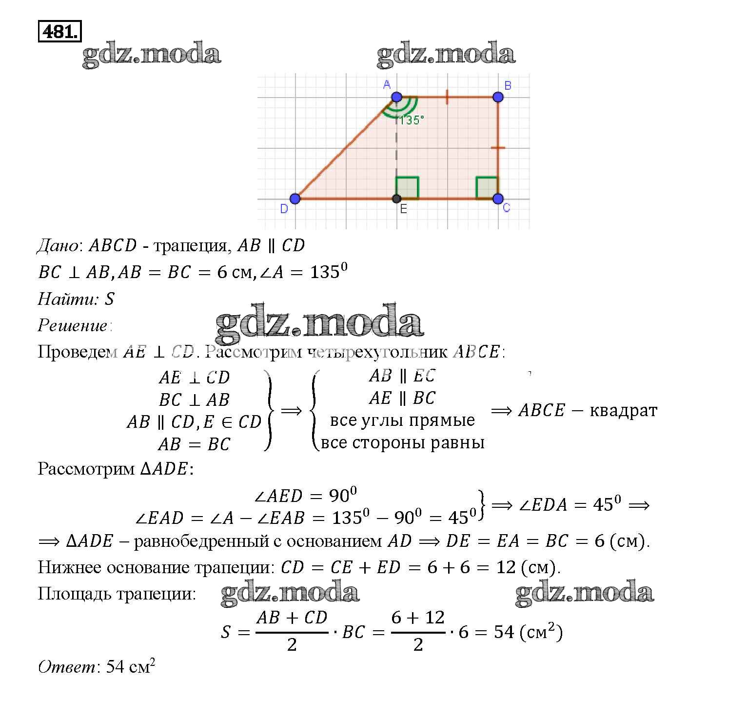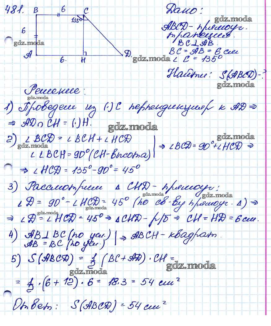 ОТВЕТ на задание № 481 Учебник по Геометрии 7-9 класс Атанасян