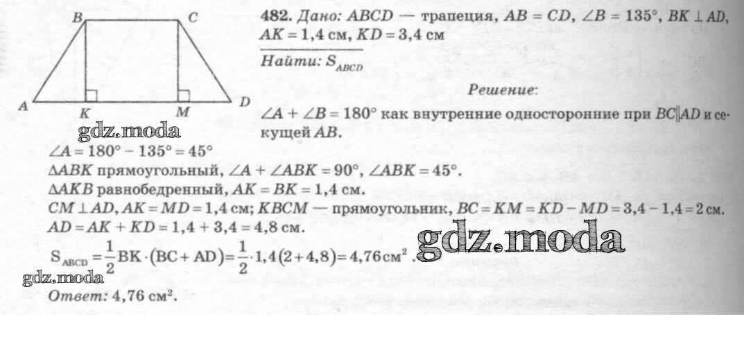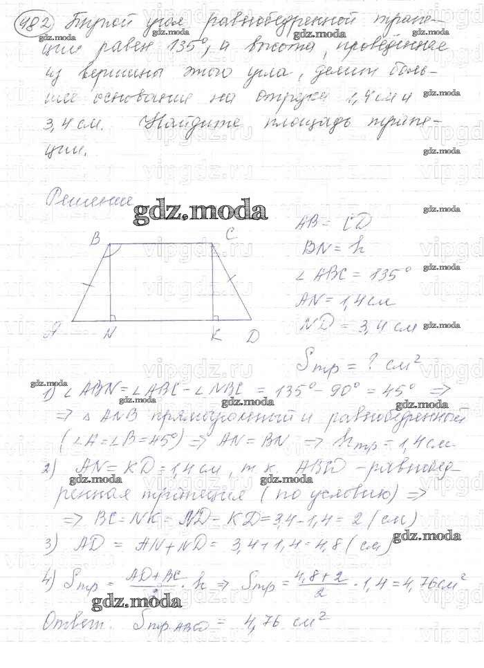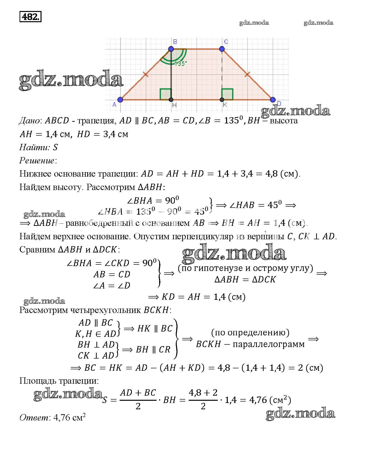 ОТВЕТ на задание № 482 Учебник по Геометрии 7-9 класс Атанасян
