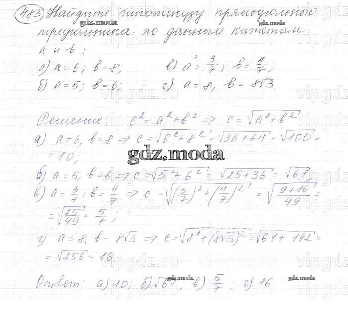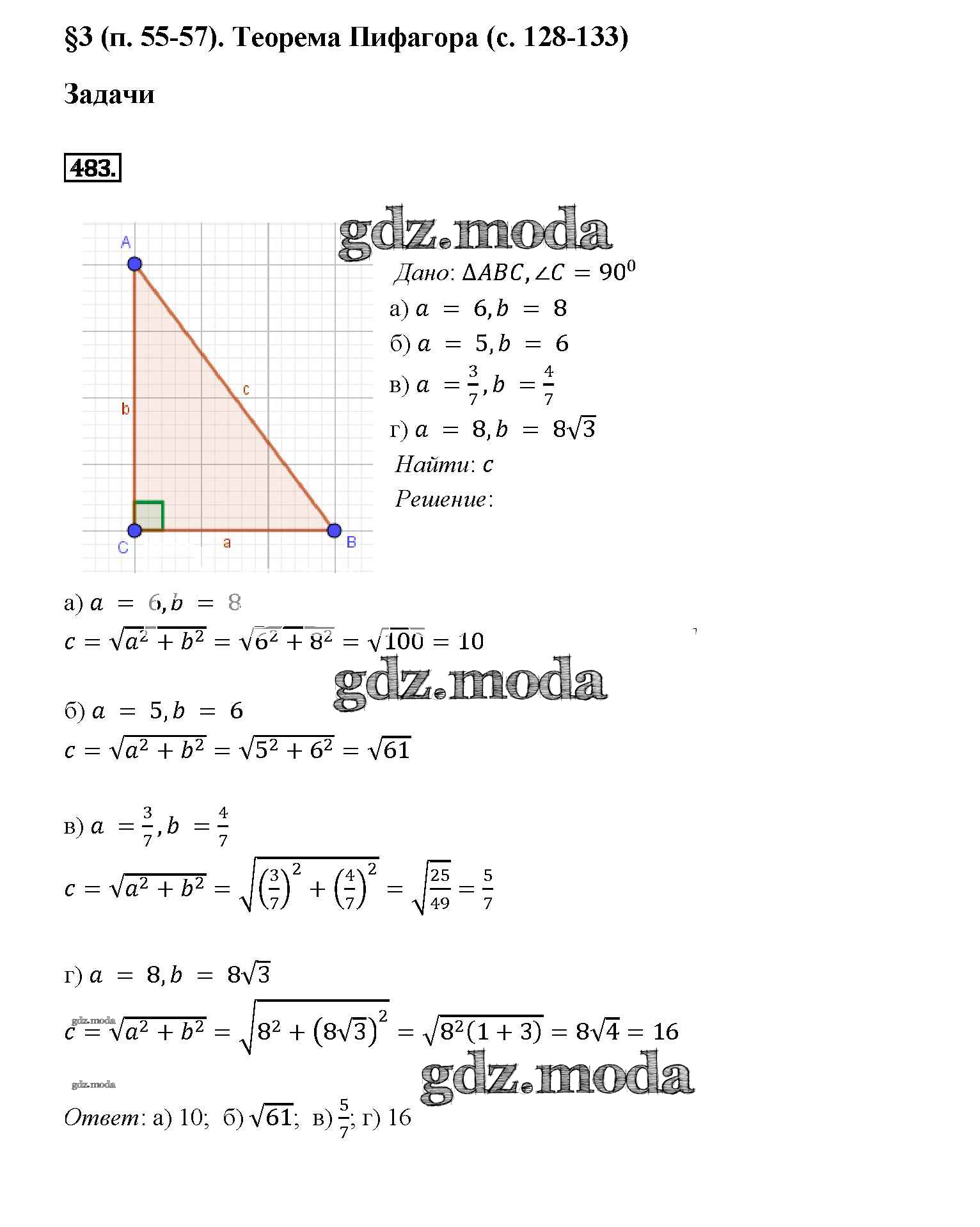 ОТВЕТ на задание № 483 Учебник по Геометрии 7-9 класс Атанасян