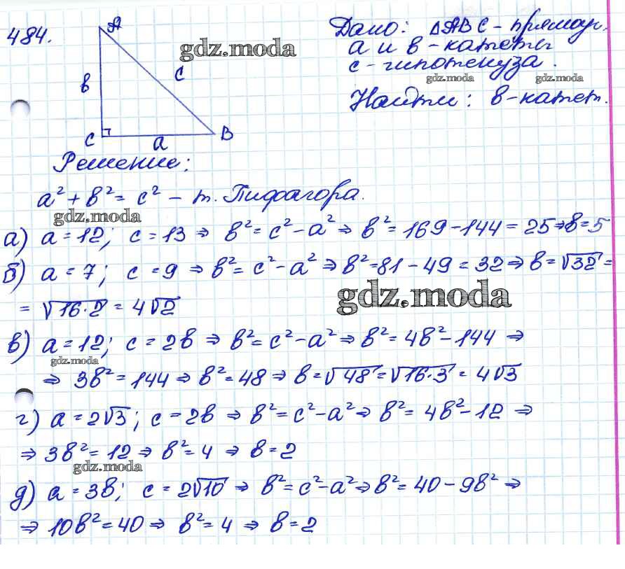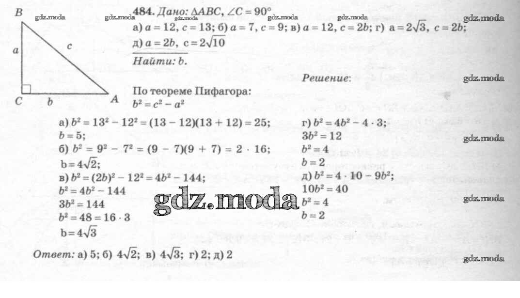 ОТВЕТ на задание № 484 Учебник по Геометрии 7-9 класс Атанасян