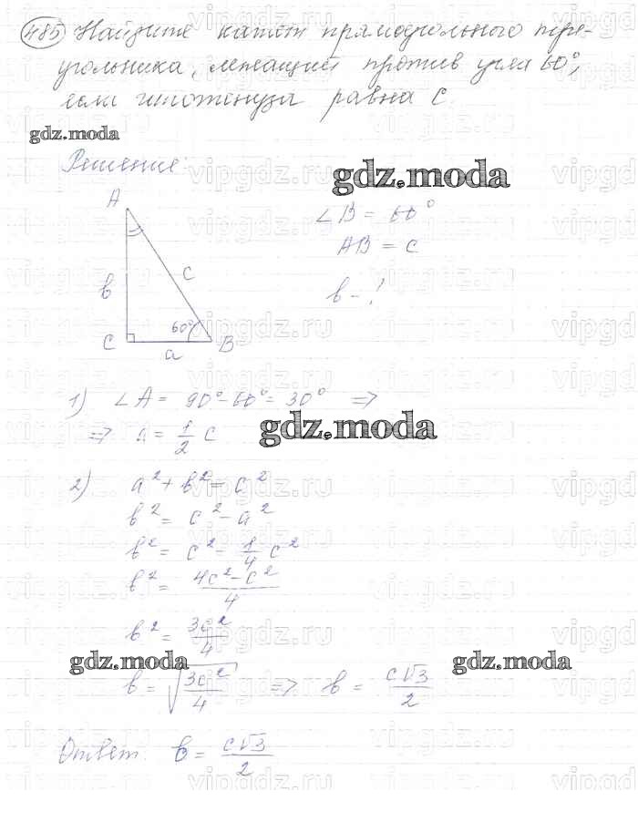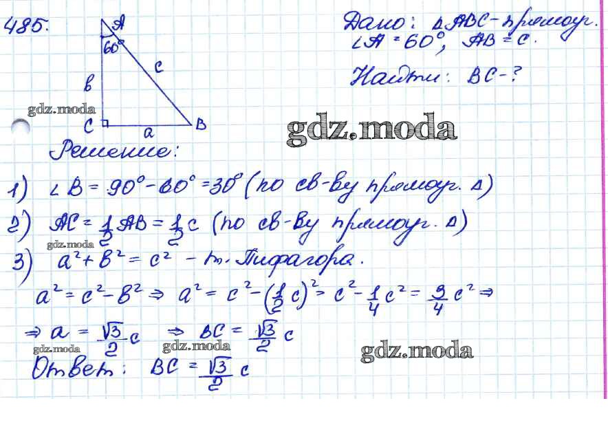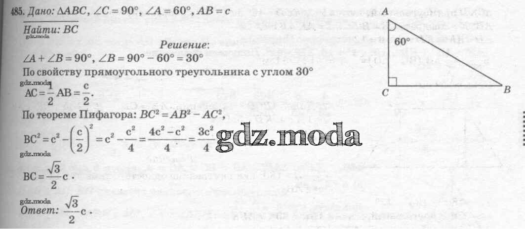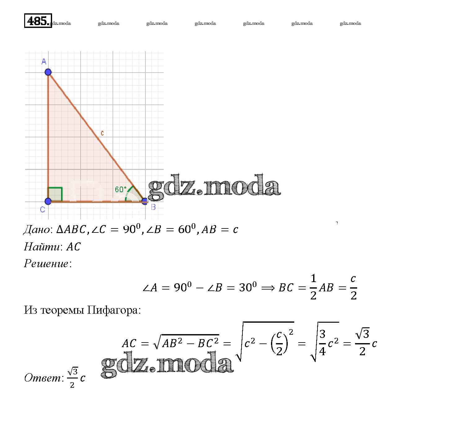 ОТВЕТ на задание № 485 Учебник по Геометрии 7-9 класс Атанасян