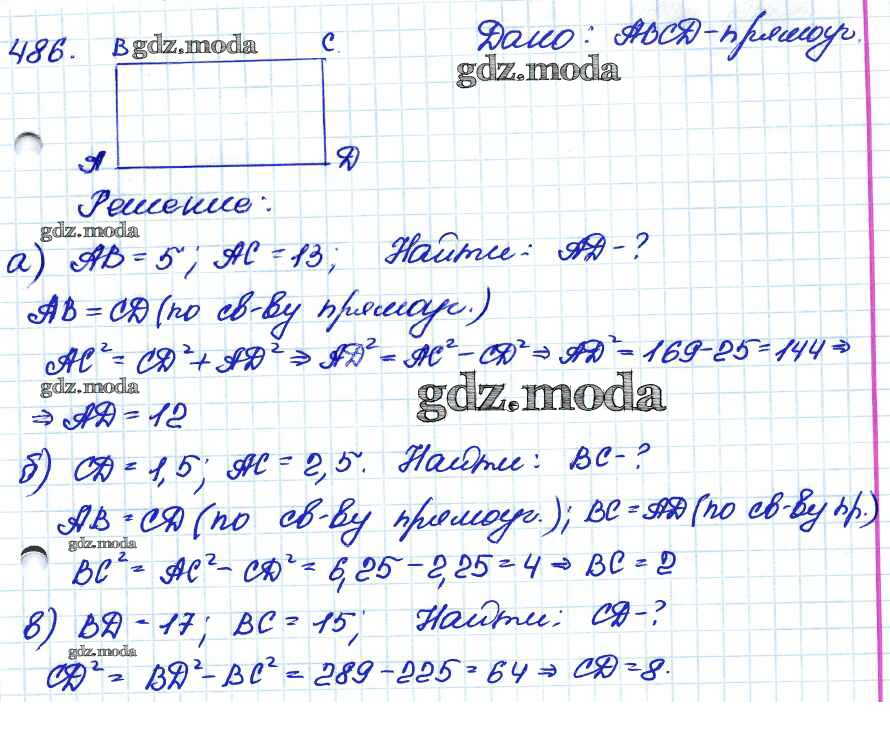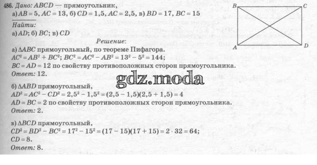 ОТВЕТ на задание № 486 Учебник по Геометрии 7-9 класс Атанасян