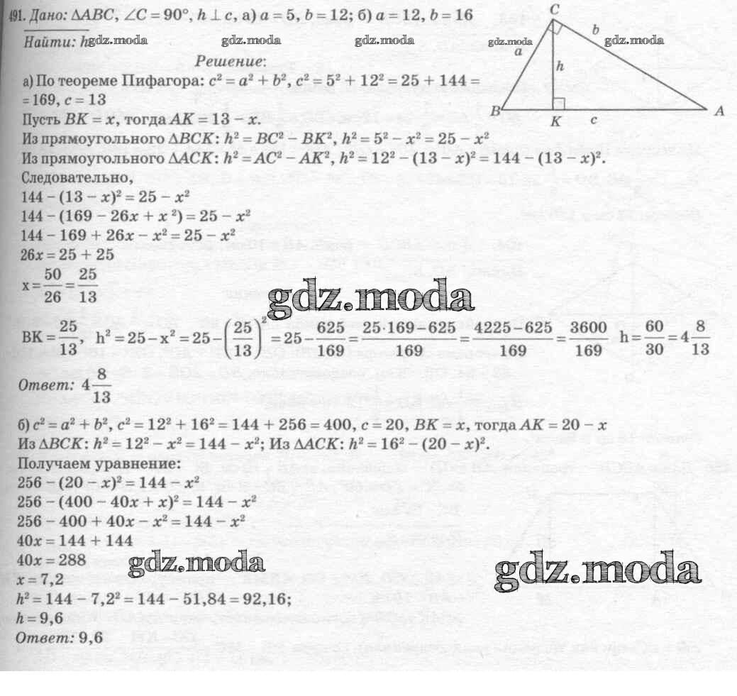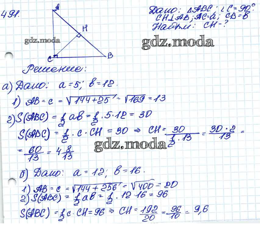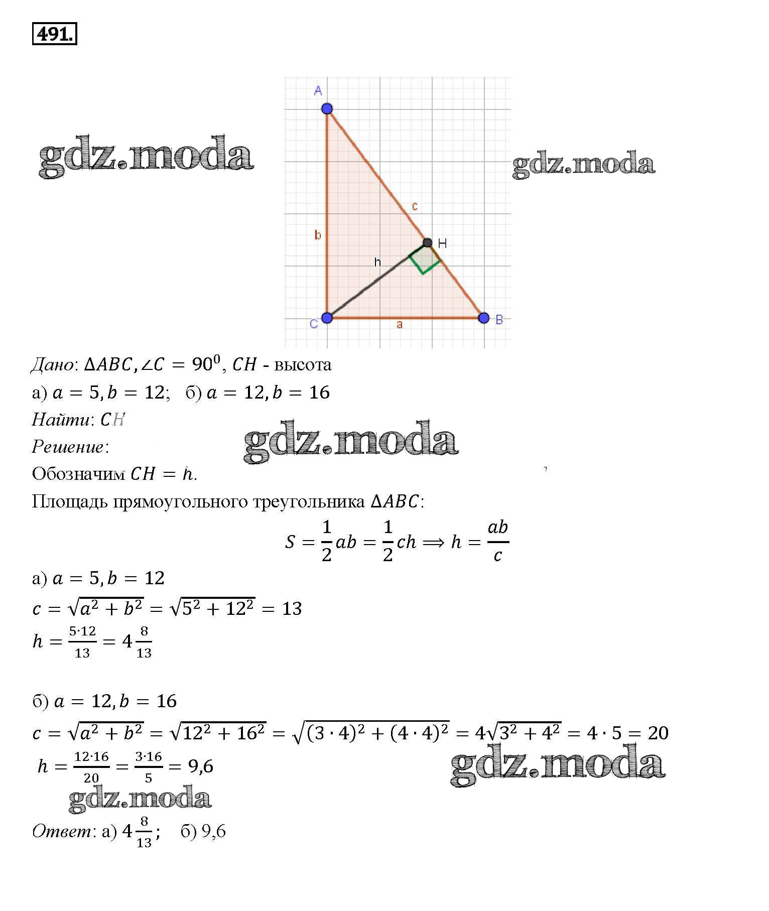 ОТВЕТ на задание № 491 Учебник по Геометрии 7-9 класс Атанасян