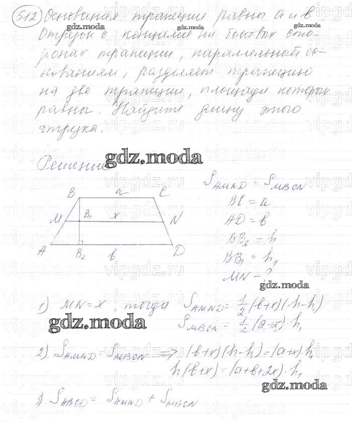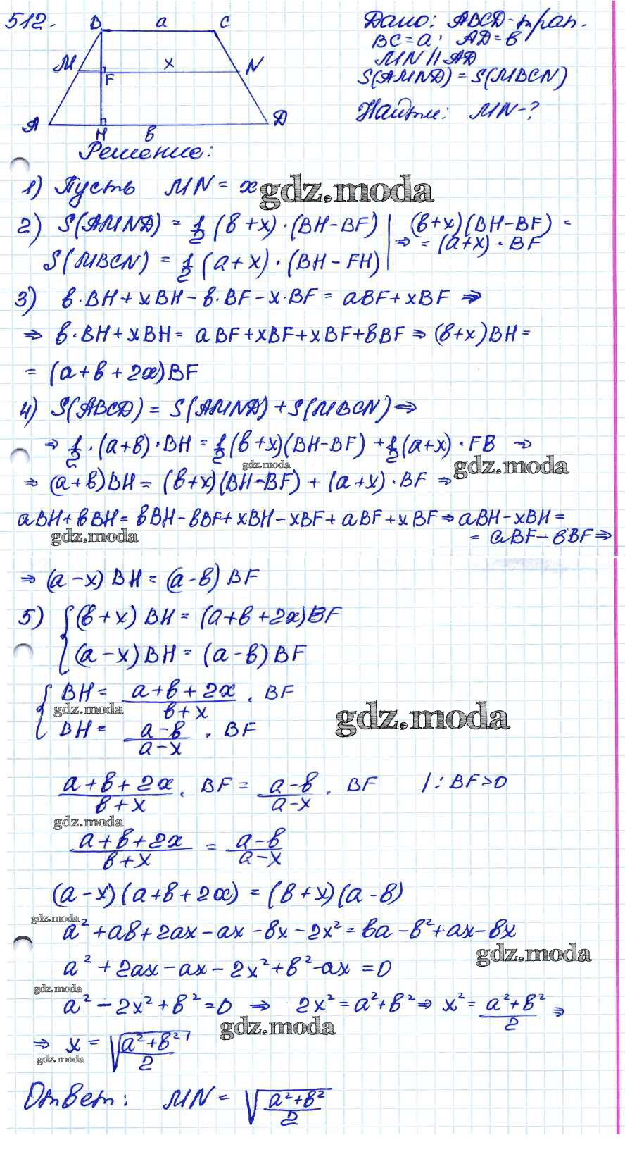 ОТВЕТ на задание № 512 Учебник по Геометрии 7-9 класс Атанасян