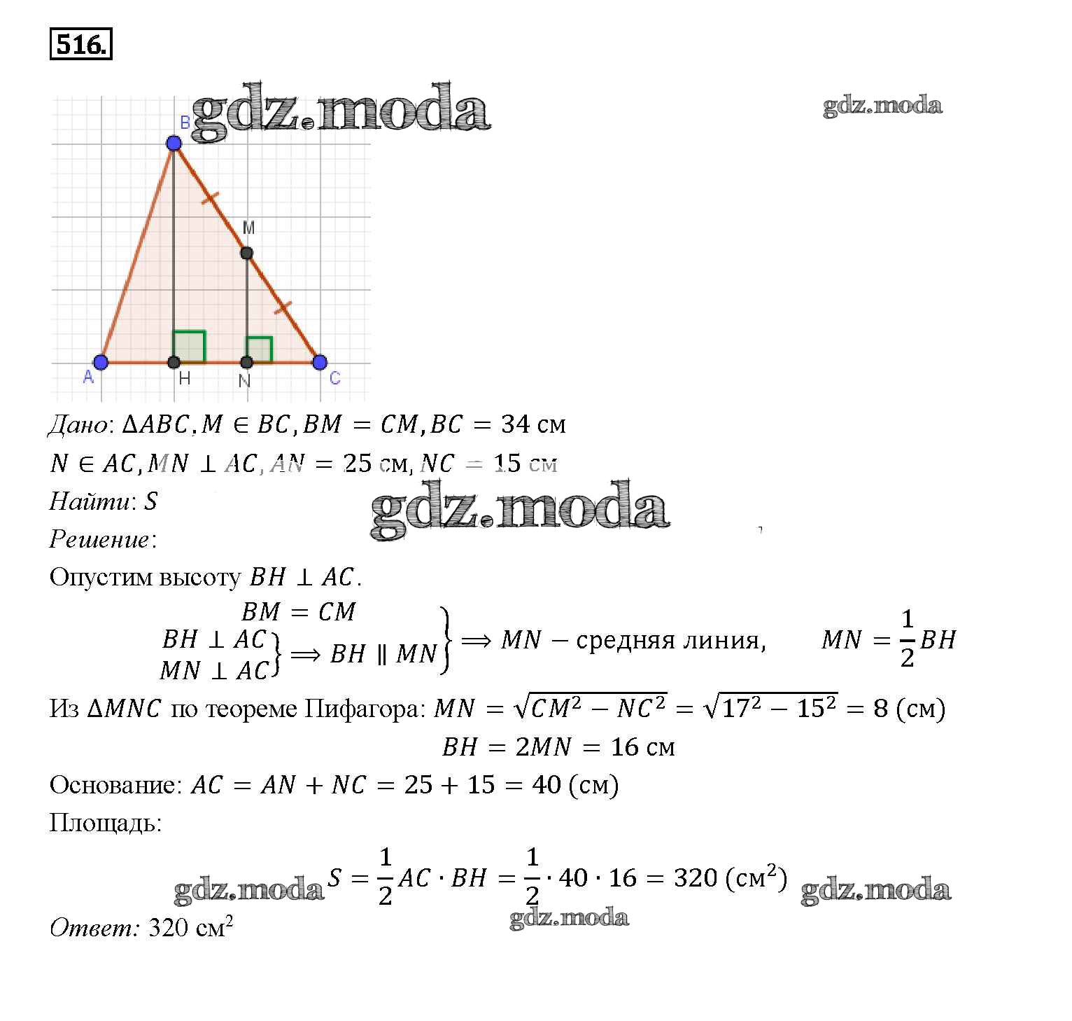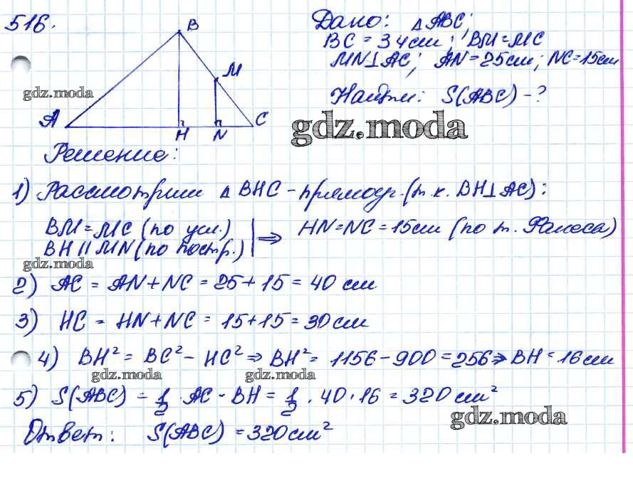 ОТВЕТ на задание № 516 Учебник по Геометрии 7-9 класс Атанасян
