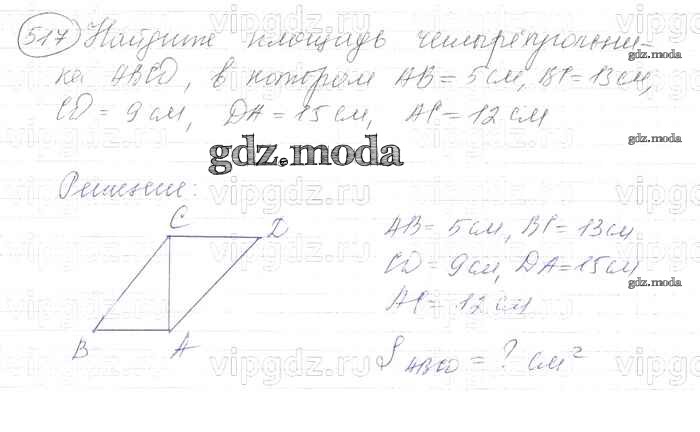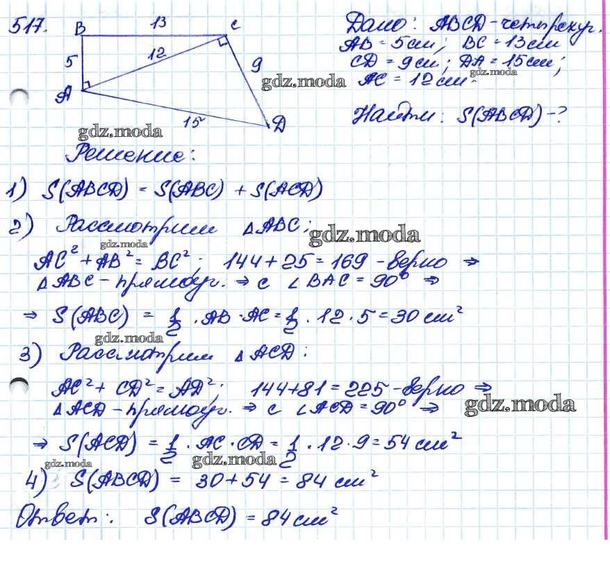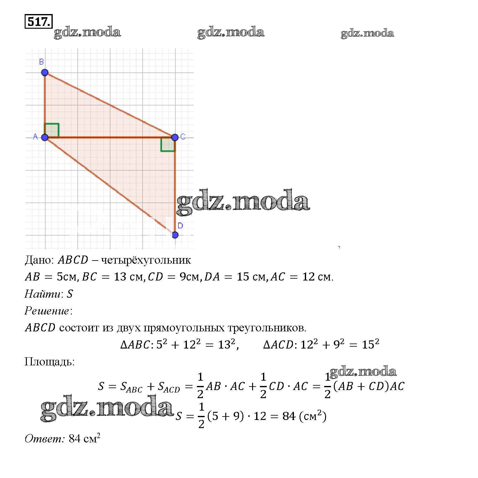 ОТВЕТ на задание № 517 Учебник по Геометрии 7-9 класс Атанасян