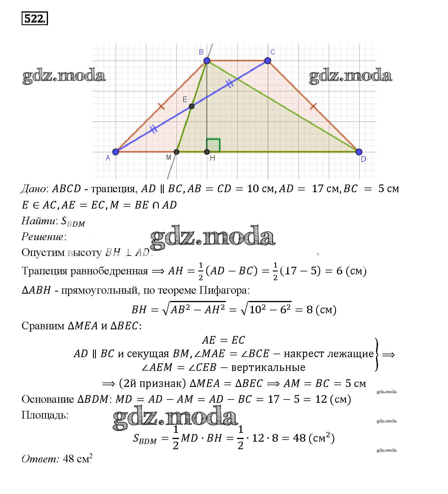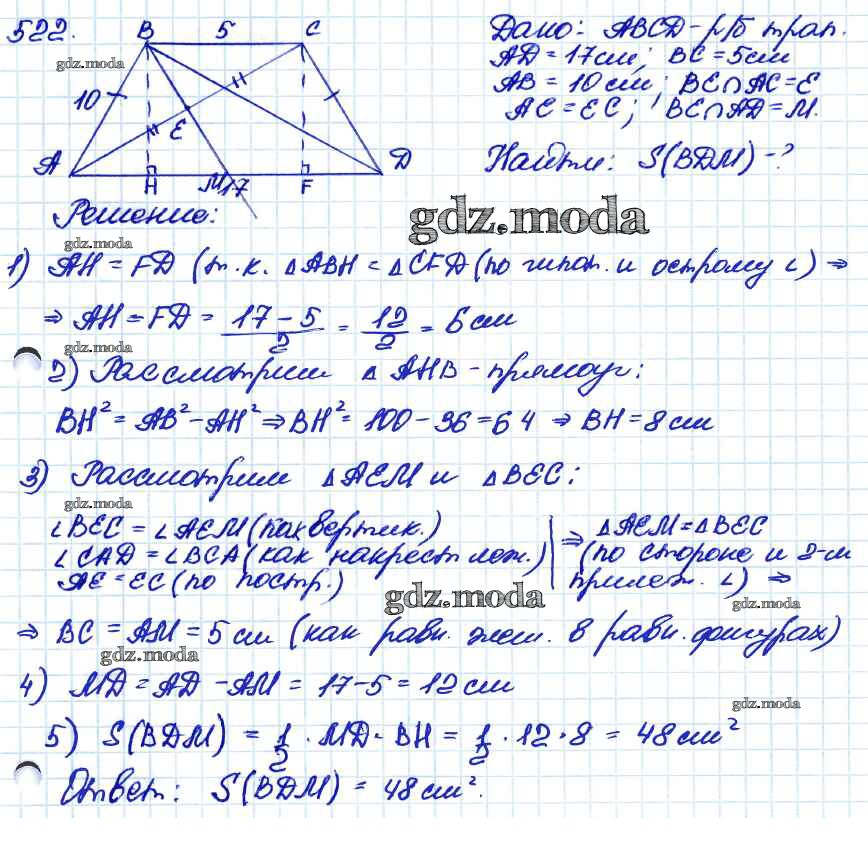 ОТВЕТ на задание № 522 Учебник по Геометрии 7-9 класс Атанасян