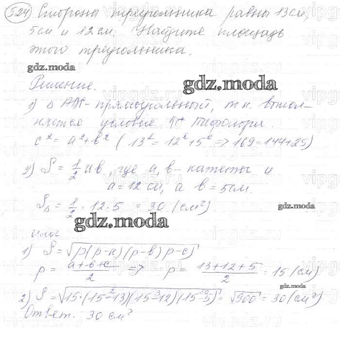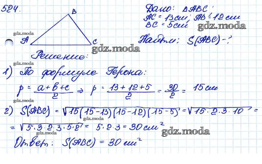 ОТВЕТ на задание № 524 Учебник по Геометрии 7-9 класс Атанасян