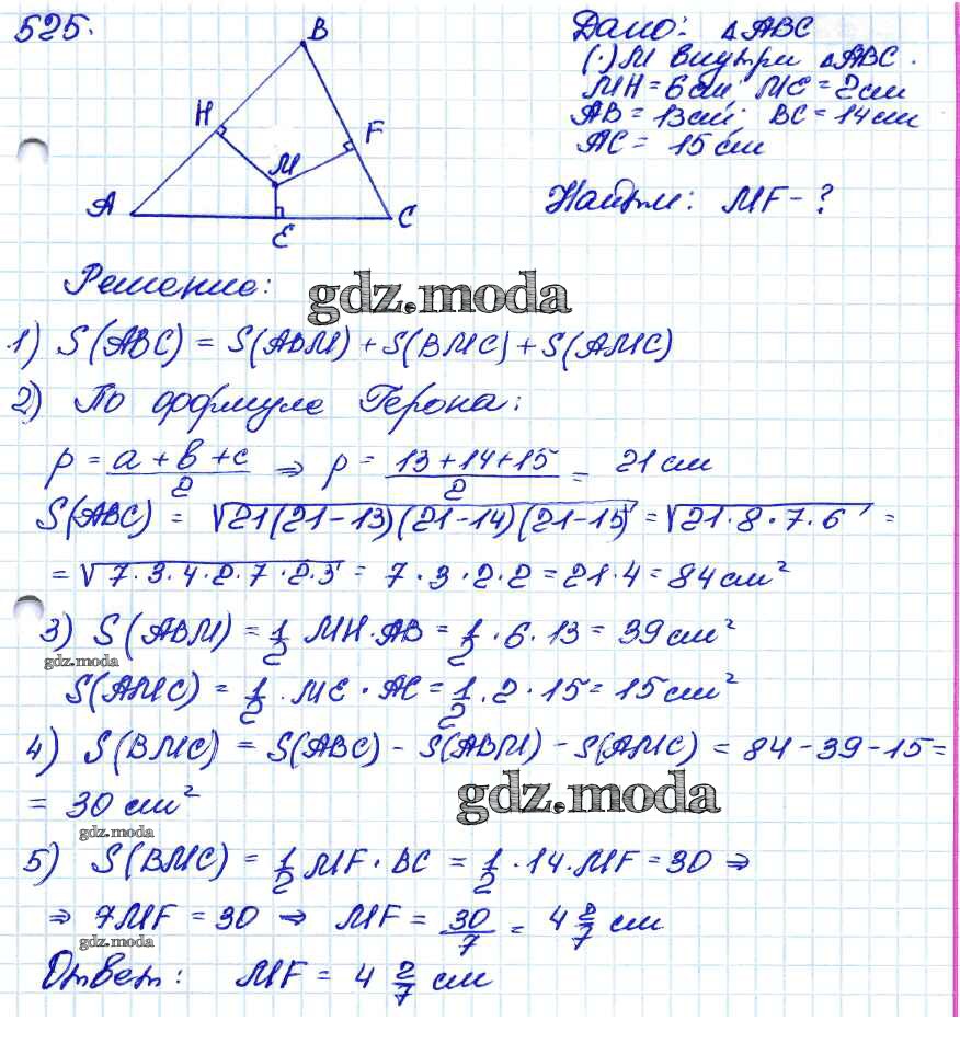 ОТВЕТ на задание № 525 Учебник по Геометрии 7-9 класс Атанасян