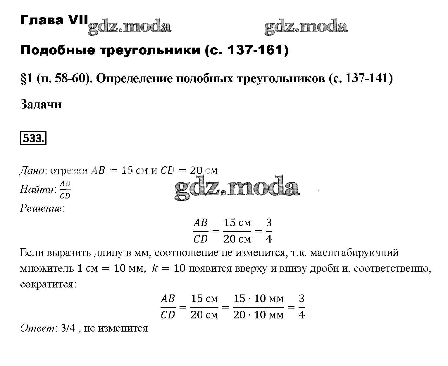 ОТВЕТ на задание № 533 Учебник по Геометрии 7-9 класс Атанасян