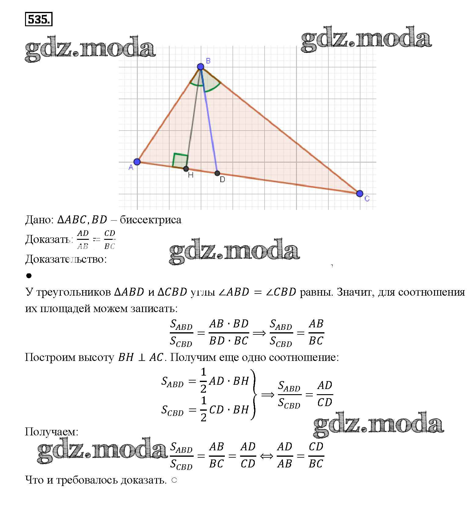 ГДЗ решение к заданию № 535 Геометрия 7-9 классы Атанасян Л.С. Просвещение 2010 ФГОС бесплатно на гдз.мода!