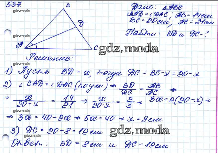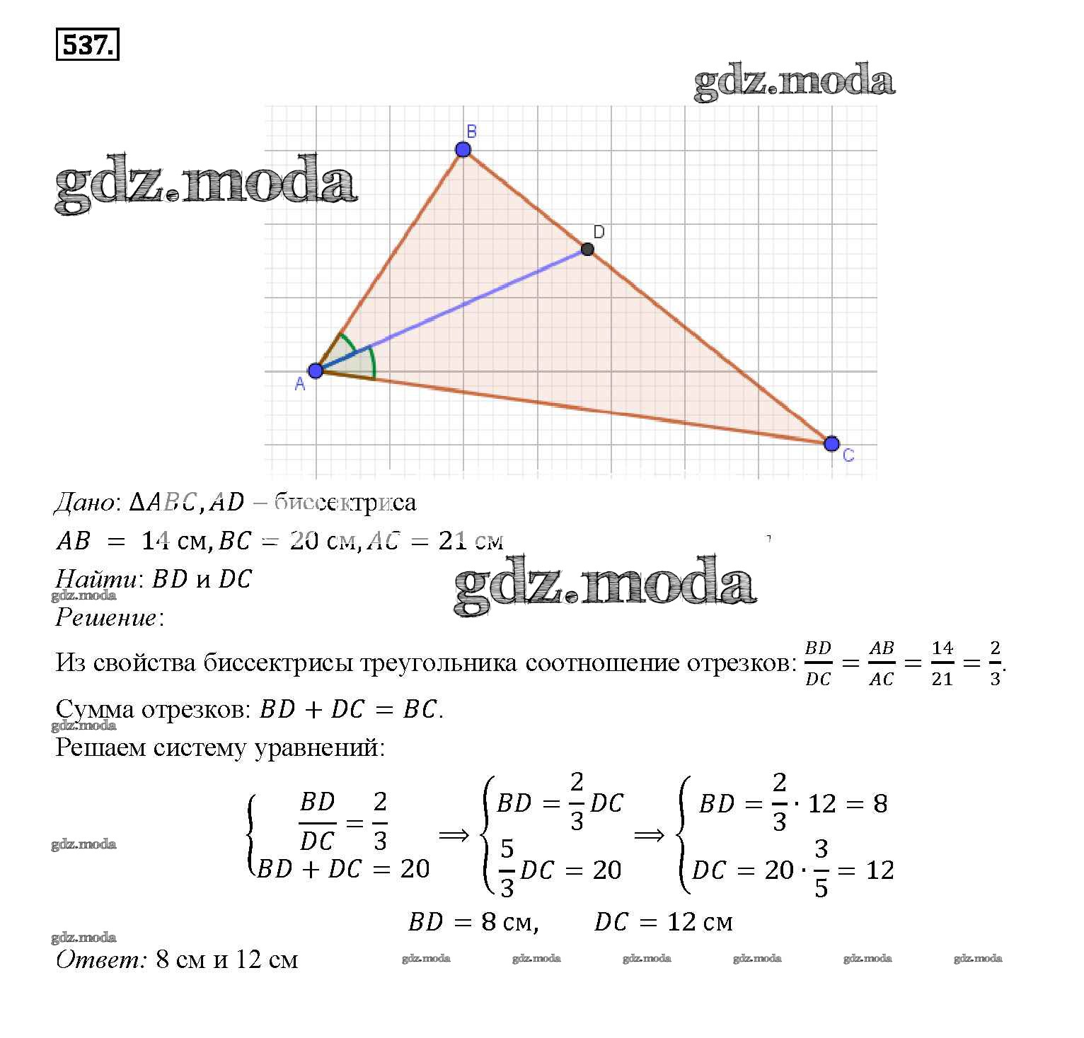 ОТВЕТ на задание № 537 Учебник по Геометрии 7-9 класс Атанасян