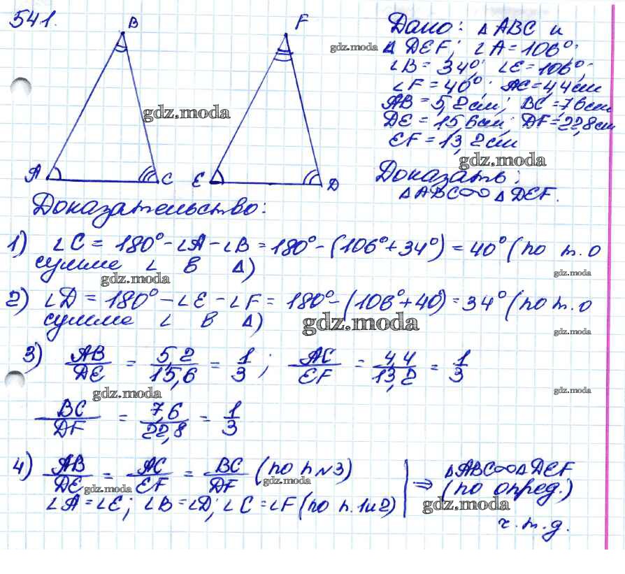 ОТВЕТ на задание № 541 Учебник по Геометрии 7-9 класс Атанасян