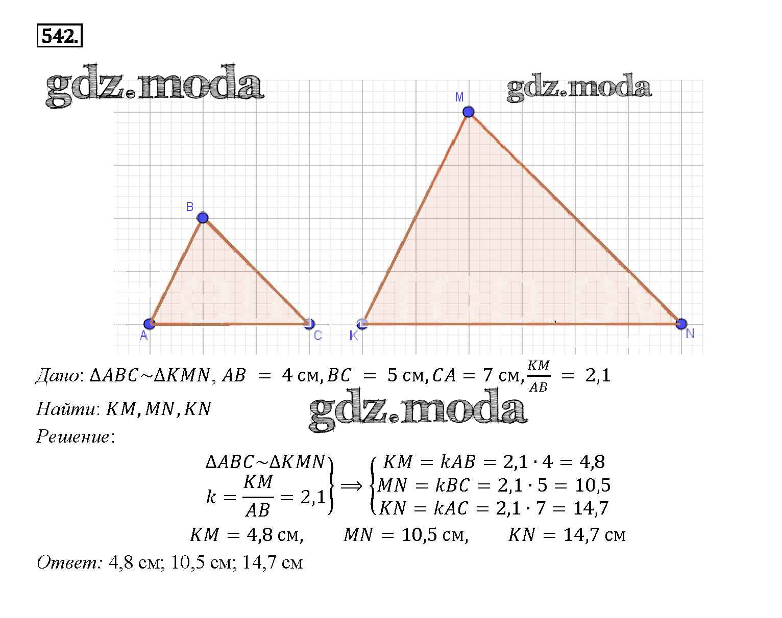 ОТВЕТ на задание № 542 Учебник по Геометрии 7-9 класс Атанасян