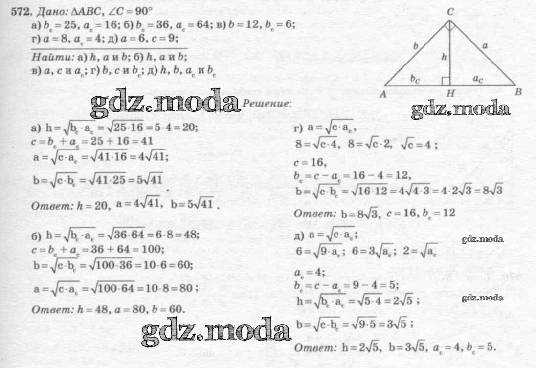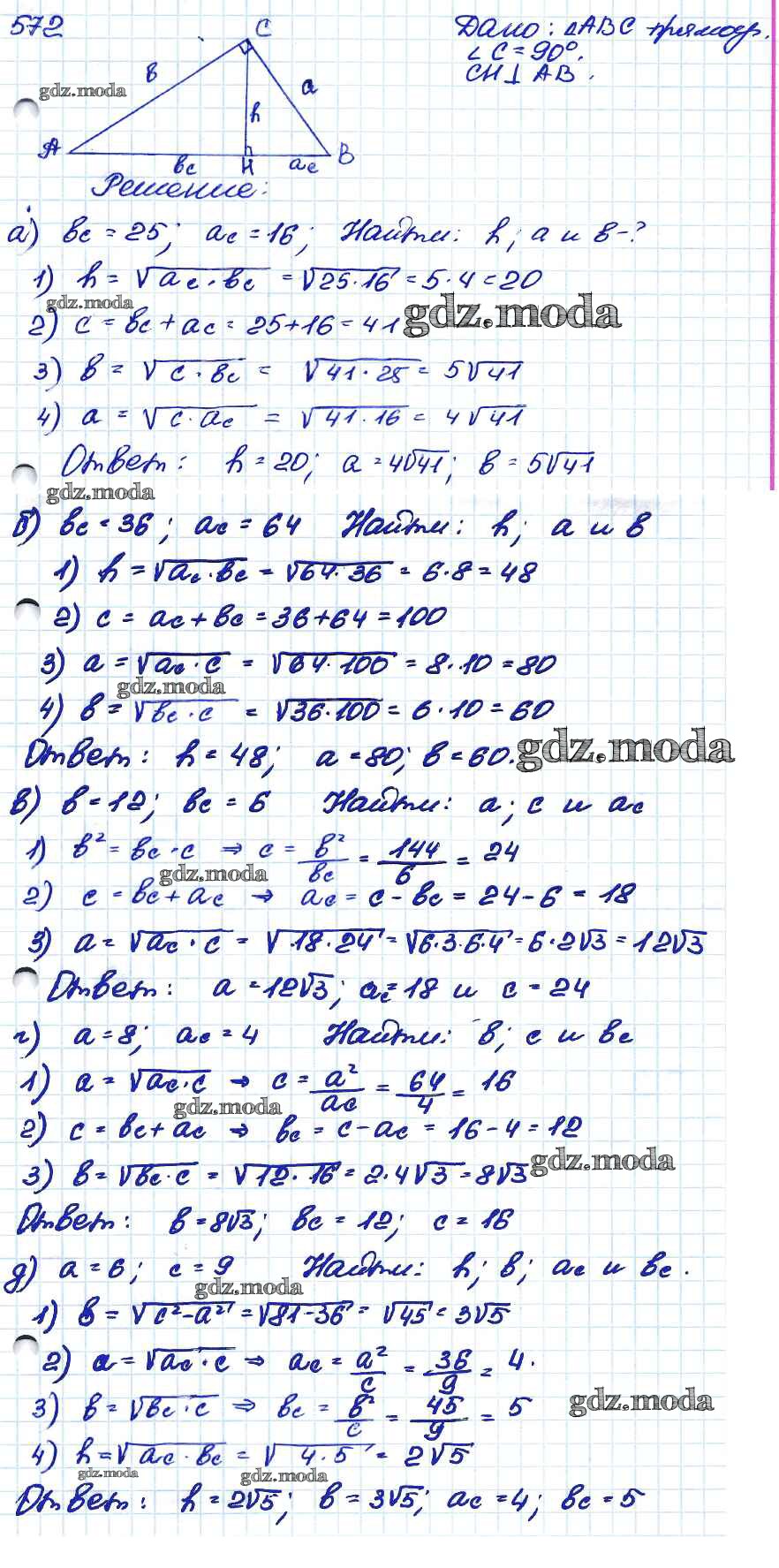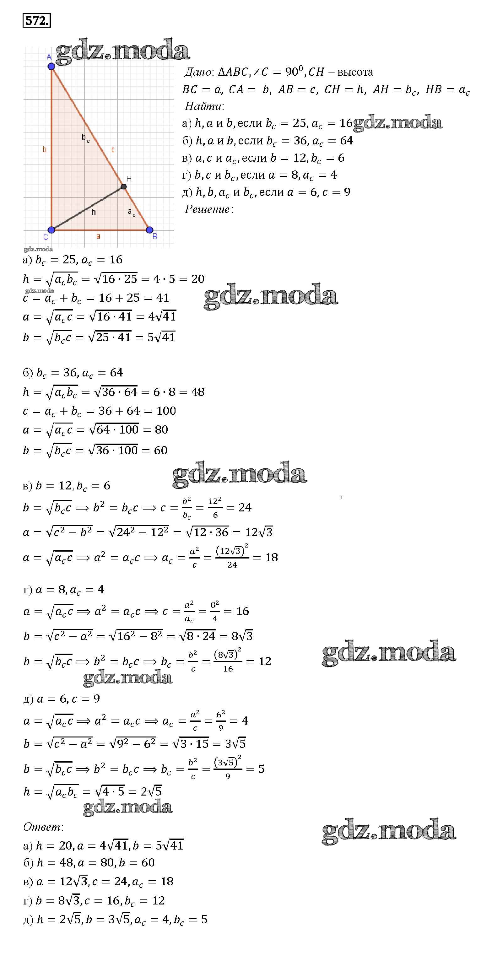 ОТВЕТ на задание № 572 Учебник по Геометрии 7-9 класс Атанасян