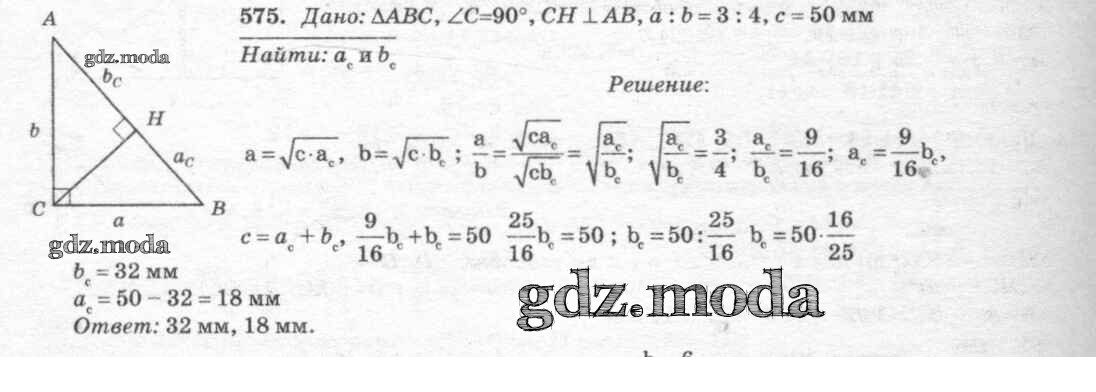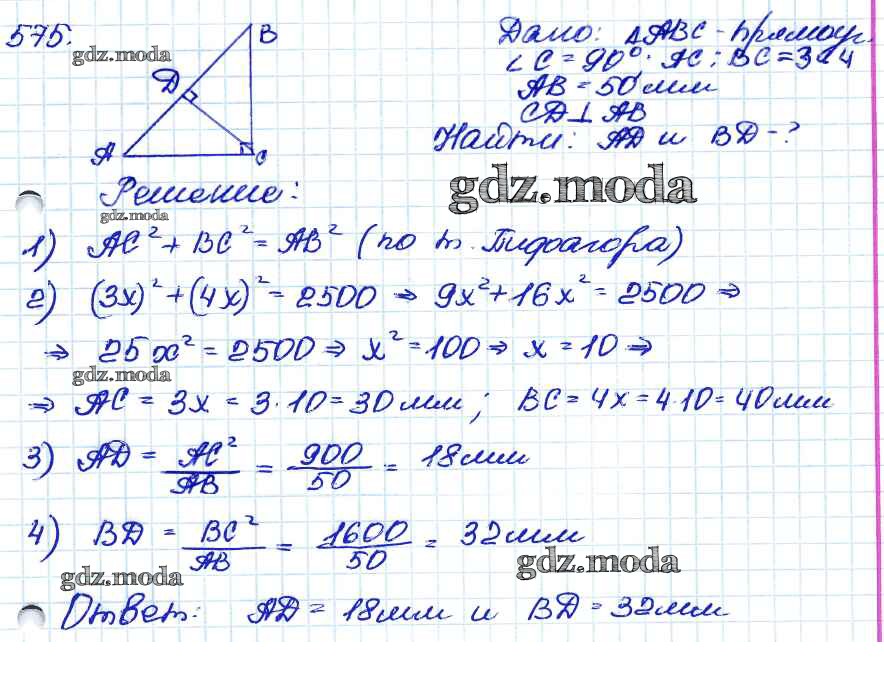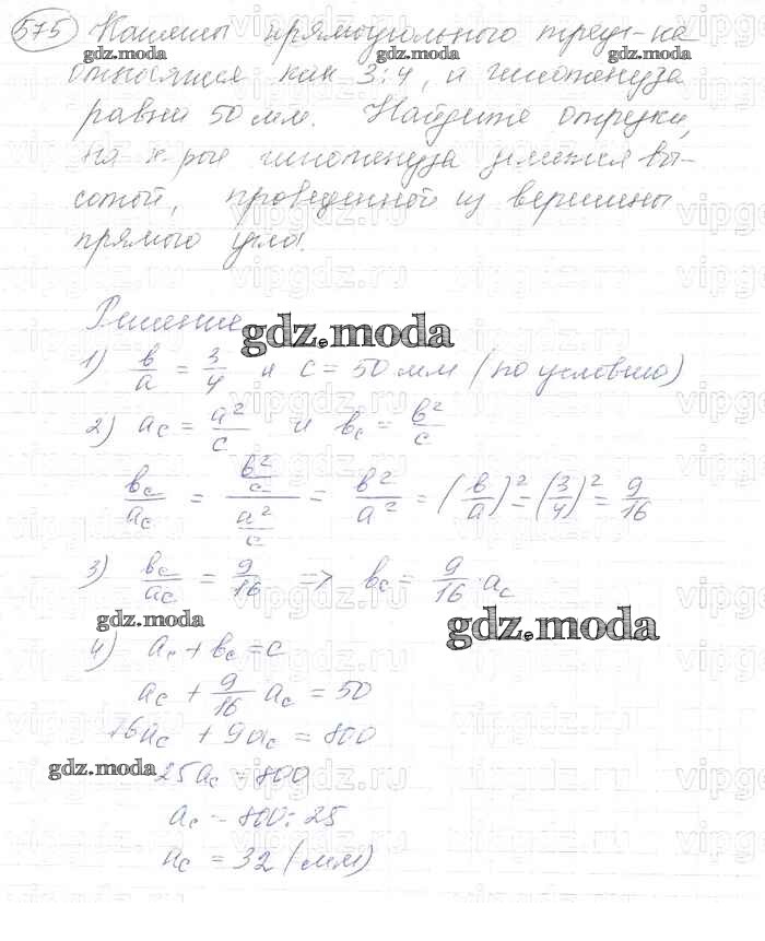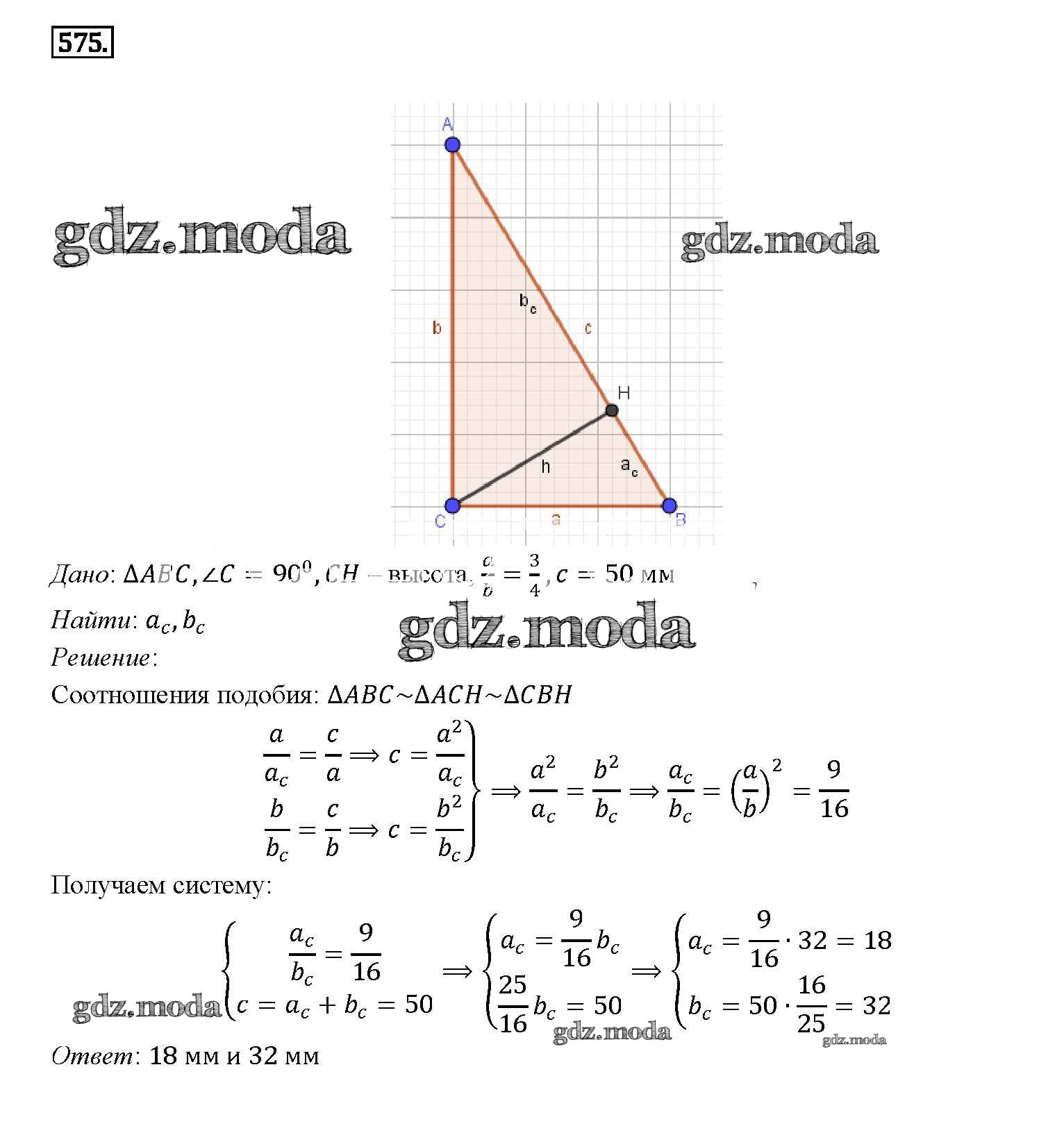 ОТВЕТ на задание № 575 Учебник по Геометрии 7-9 класс Атанасян