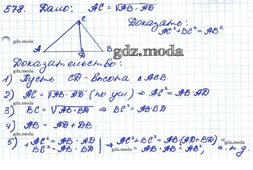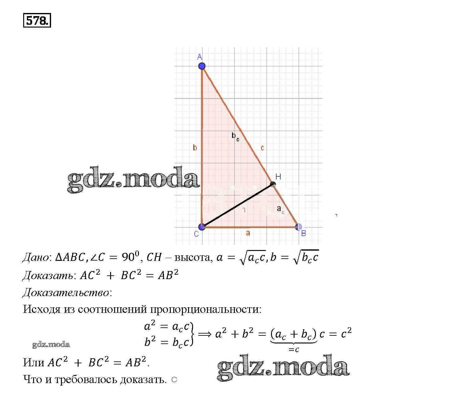 ОТВЕТ на задание № 578 Учебник по Геометрии 7-9 класс Атанасян