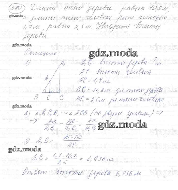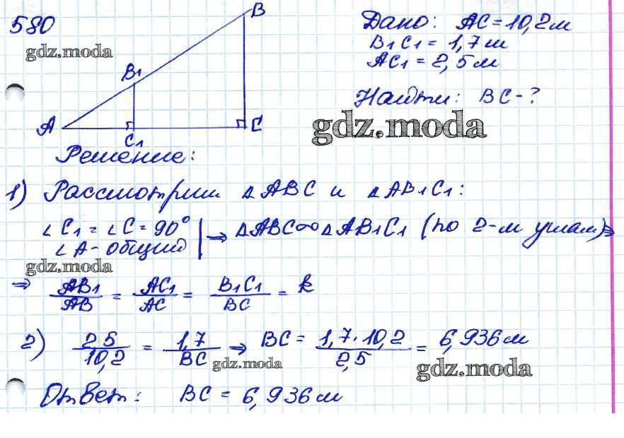 ОТВЕТ на задание № 580 Учебник по Геометрии 7-9 класс Атанасян