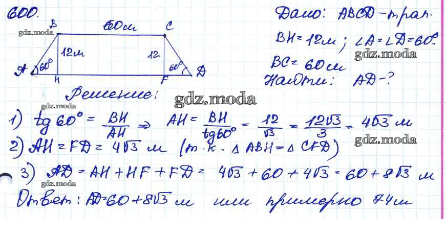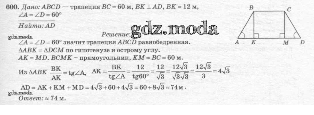 ОТВЕТ на задание № 600 Учебник по Геометрии 7-9 класс Атанасян