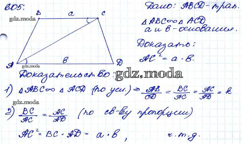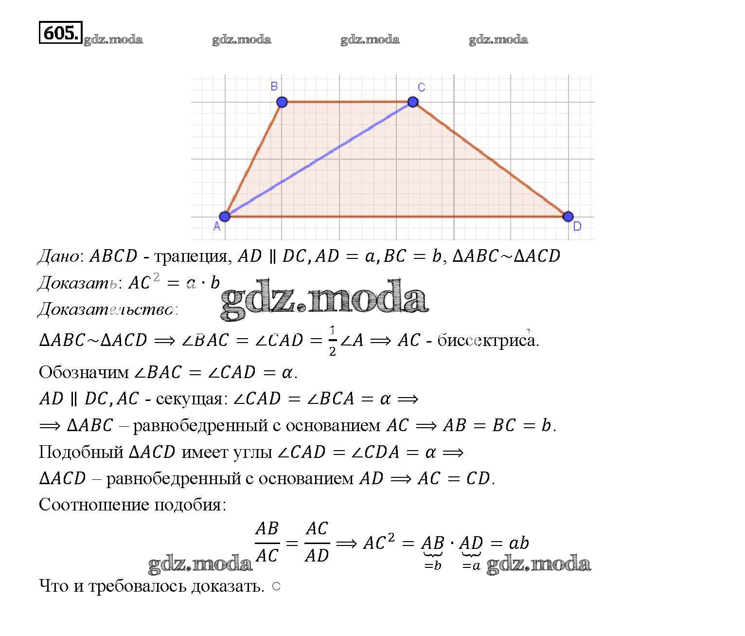 ОТВЕТ на задание № 605 Учебник по Геометрии 7-9 класс Атанасян