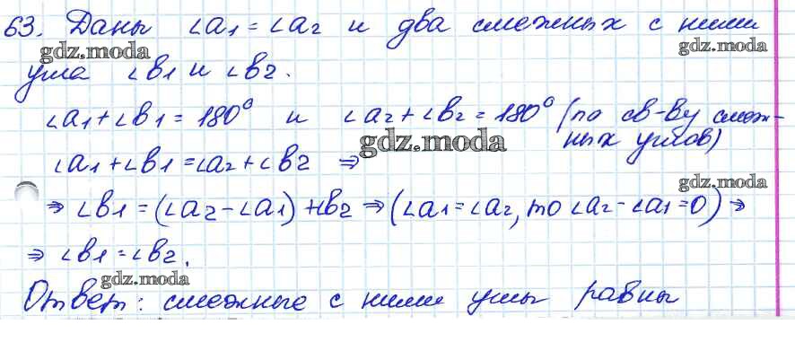 ОТВЕТ на задание № 63 Учебник по Геометрии 7-9 класс Атанасян