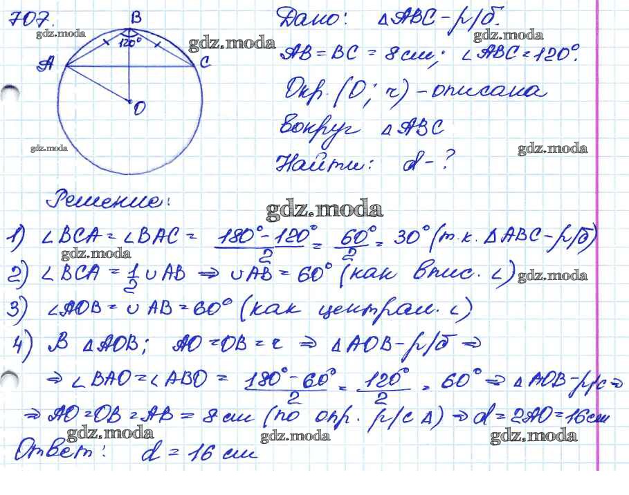 ОТВЕТ на задание № 707 Учебник по Геометрии 7-9 класс Атанасян