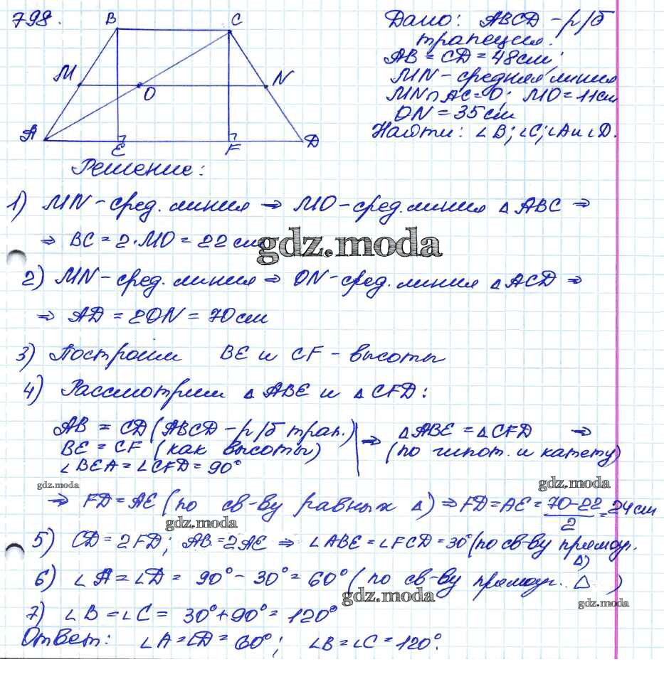 ОТВЕТ на задание № 798 Учебник по Геометрии 7-9 класс Атанасян